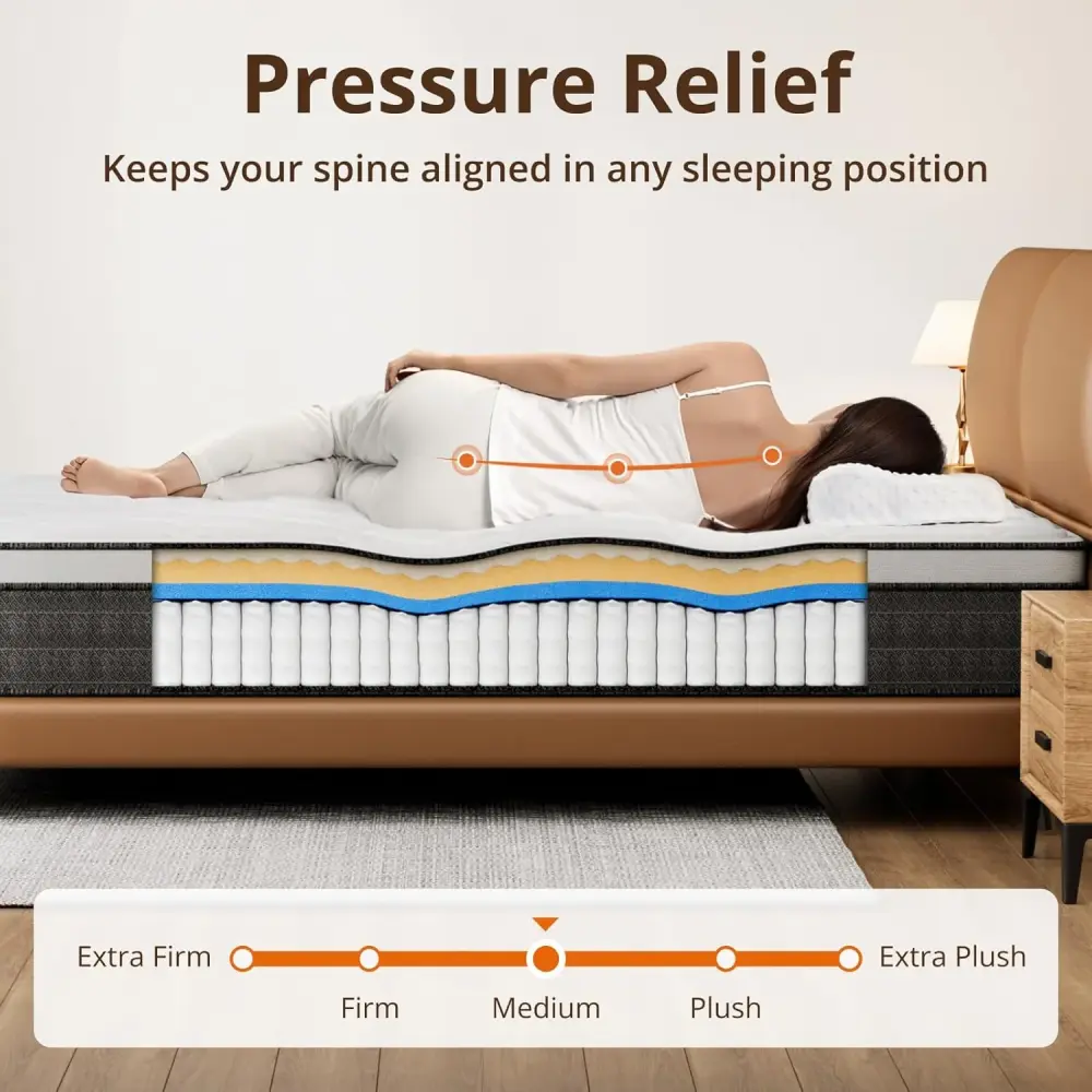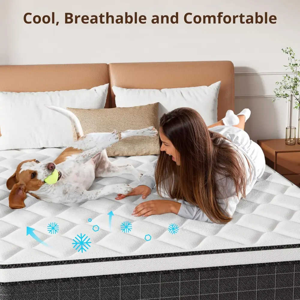 The 10/12 Inch Hybrid Mattress is designed to deliver the sleep quality you’ve been dreaming of. Featuring cooling gel memory foam and individually wrapped pocket springs, this medium-firm mattress offers the ideal blend of comfort, support, and durability.