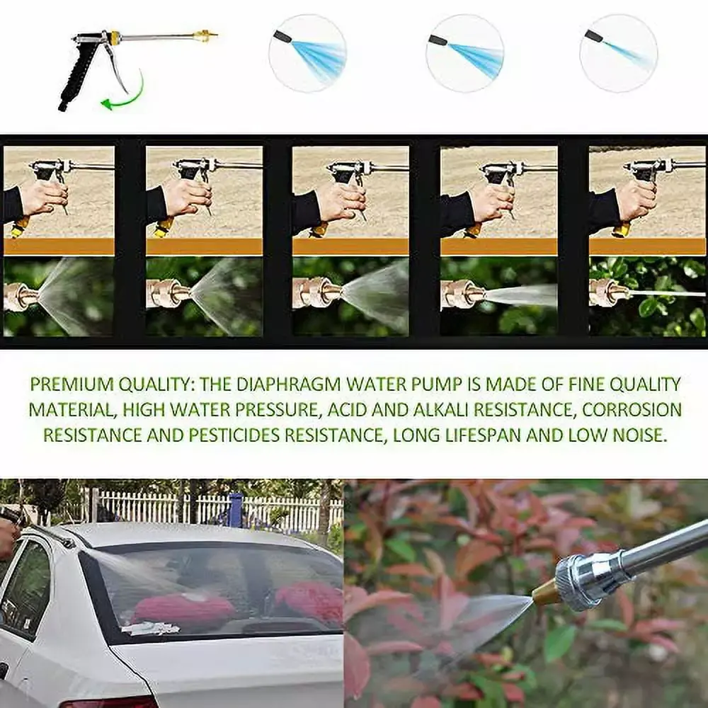 - Premium Quality: The Diaphragm Water Pump is made of high quality material. 130psi high water pressure. acid and alkali resistance. corrosion resistance and pesticides resistance. long lifespan and low noise.