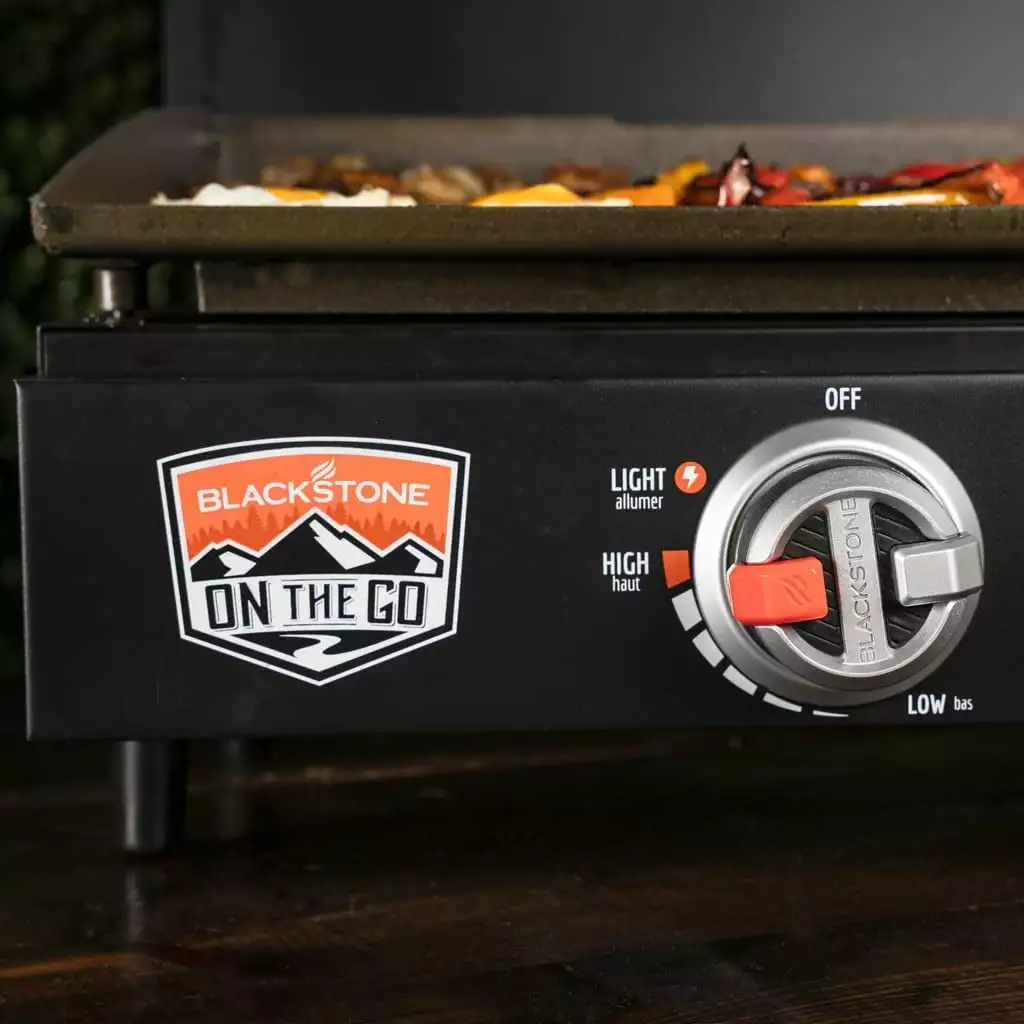 - Blackstone Griddle Lid – Our flat top propane grill features an integrated. classically styled painted hood that aids the cooking process and shields the griddle from elements. It sports an orange grip handle on the hood to protect you from warm touch. The griddle cover can be removed.