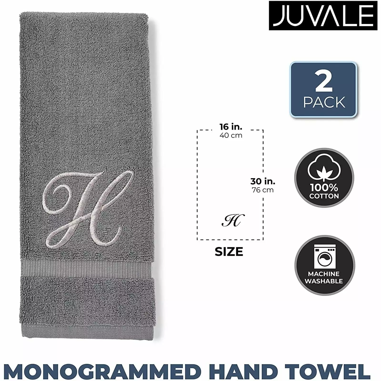- Letter H Hand Towels: This set of 2 monogram towels feature the initial letter H beautifully embroidered in silver thread; the simplistic design will instantly add elegance to your master bathroom. guest bathroom. or powder room
