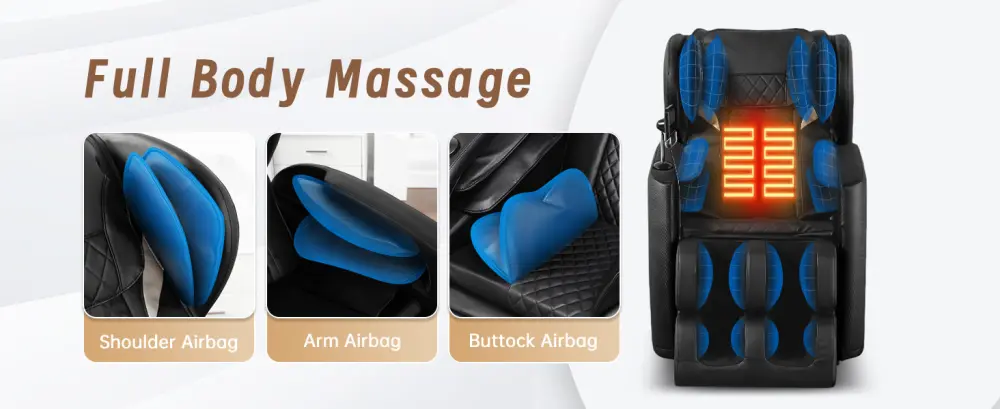 [Full-body massage] The support of the massage chair is equipped with 6 fixed rollers, which can massage your neck, support and waist, and you can choose from 5 preset automatic modes. The full body massage chair is equipped with heating functions for both the waist and legs, promoting blood circulation and relieving muscle soreness. The zero gravity massage chair is also equipped with a number of airbags, through the air bag pinch and massage shoulders, arms, calves, through the three-gear strength.