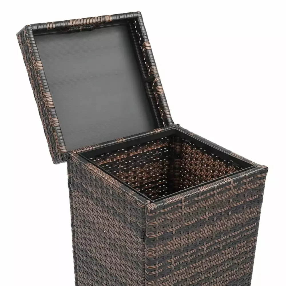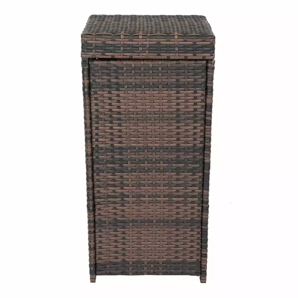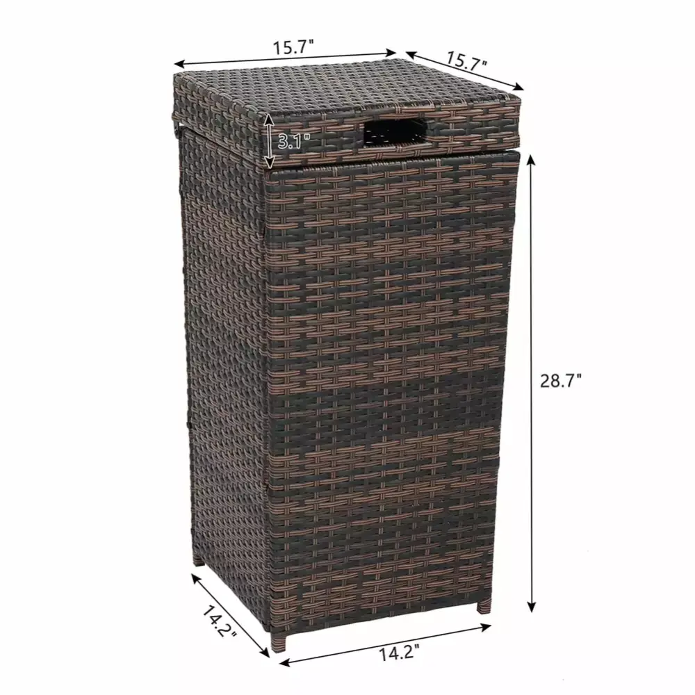 27 Gallon Outdoor Wicker Trash Can with Lid Use in Backyard. Deck. or Patio. Brown