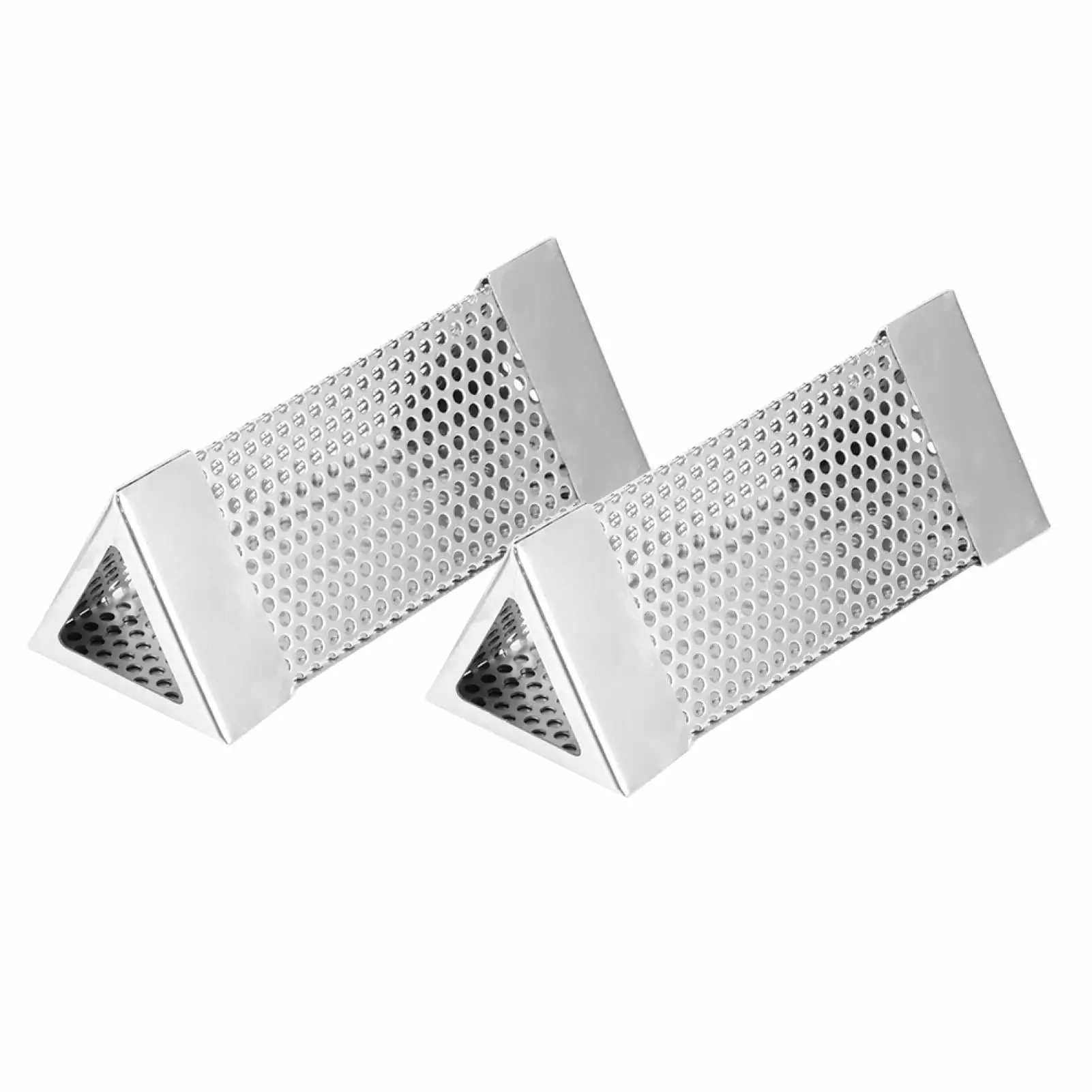 1 With massive density diffusion holes on the body. the smoker tube can let air come in. diffusing smoke efficiently and evenly to your food. 2 The perforated design tube smoker allow the product stay lit the best and completely burn to provide constant smoke. 3 Adding wonderful smoking flavor to your meat. beef. cheese. fish. nuts. vegetables. etc. Let you enjoy the food. and enjoy the barbecue. 4 Made of high standard grade 304 stainless steel. which is resistant to rust and heat. 5 Suitable for electric. gas. charcoal and portable grills. which can turn your ordinary grill into a real smoker. 6 Exquisite workmanship. very durable. will not break or bend even after long time use.2Pcs BBQ Grill Smoker Tube Mesh Tube Pellets Smoke Box 6in Stainless Steel Barbecue AccessoryTrilateral