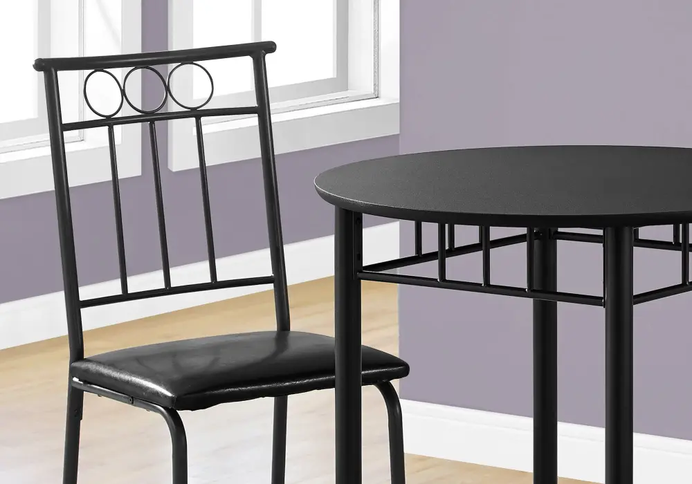 3 Pieces Dining Table Set, Small, Round, Contemporary & Modern – Black