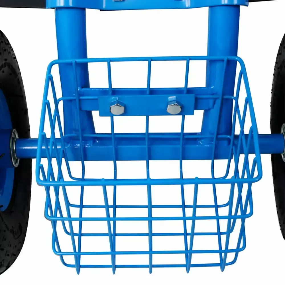 This rolling garden cart is perfect for planting and gardening. Use this handy swivel cart while working in the yard to alleviate back strain. With a seat height range of 18.1 to 22.4. a steel wire basket on the front for tools. and a black plastic tray underneath the seat. to roll through any gardening or landscaping job with ease. This cart is engineered to last. boasting a heavy-duty powder-coated steel frame and steering handle. as well as pneumatic tires.