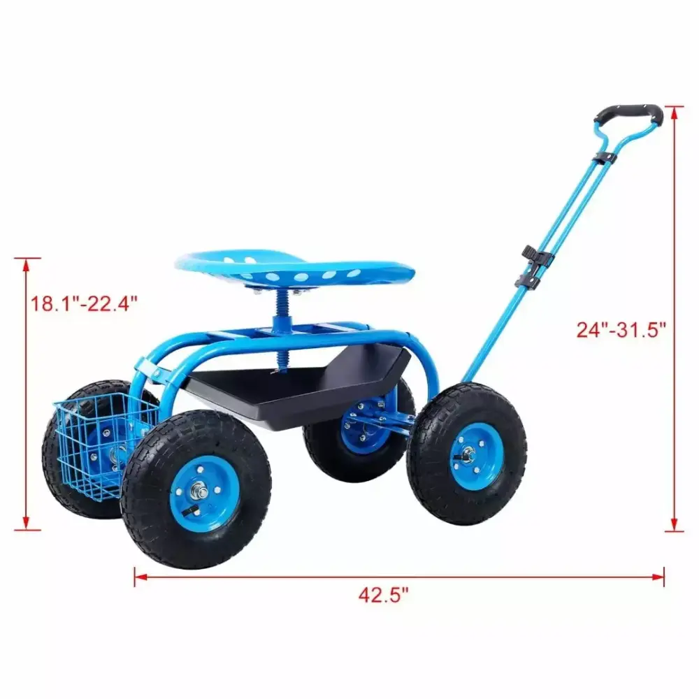 - [Convenient Tool Storage] – The Garden Tool Cart with Seat is the perfect solution for gardeners who want to keep their tools organized and easily accessible. With a convenient storage tray located underneath the seat. you can keep all your tools within reach while you work. Whether you’re planting. weeding or pruning. you’ll have everything you need at your fingertips.