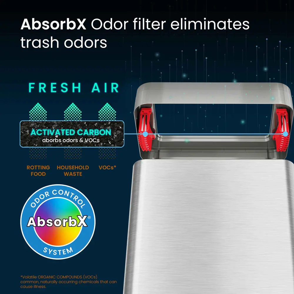 • Odor Control: Dual AbsorbX odor filters lock in unpleasant smells, keeping your space fresh.