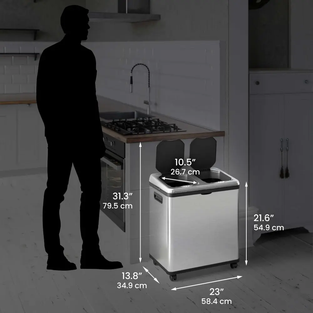 - Touchless Sensor Lids — Open automatically for hygienic, hands-free trash disposal.