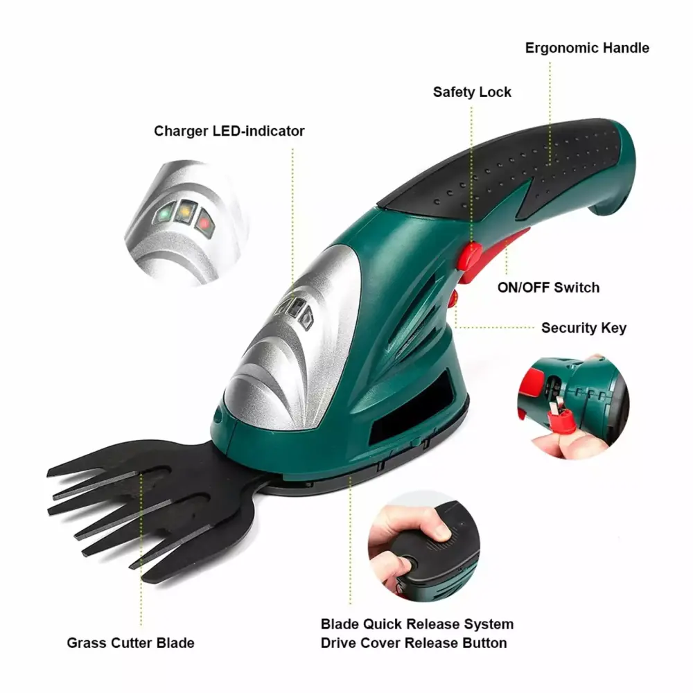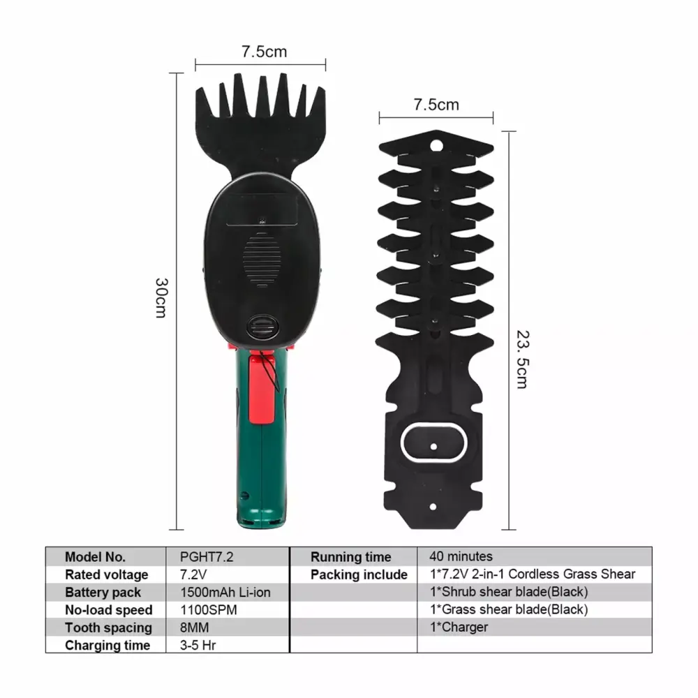 The 2-in-1 grass shear hedger boasts a 7.2-volt long-life lithium-ion battery for hassle-free.cordless operation.