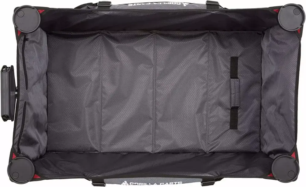 With twice the capacity of comparable wagons. the utility cart boasts a wide. deep bed with expandable sides that make sure you have plenty of space to camping gear. sports equipment. beachgoing accessories. and whatever else you need to haul. Multiple pockets help you keep essentials separated and organized while on the go.