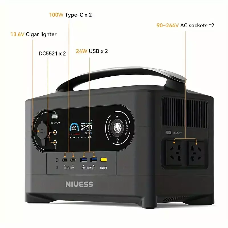 720Wh Portable Power Station with 1800W AC Output Fast Charging for Outdoor Camping