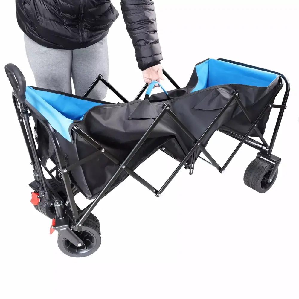 - 1. This convenient extra-large black and blue folding wagon cart is perfect for all your outdoor needs. Whether you’re heading to the beach. shopping at the farmer’s market. or working in the garden. this heavy-duty cart has you covered.
