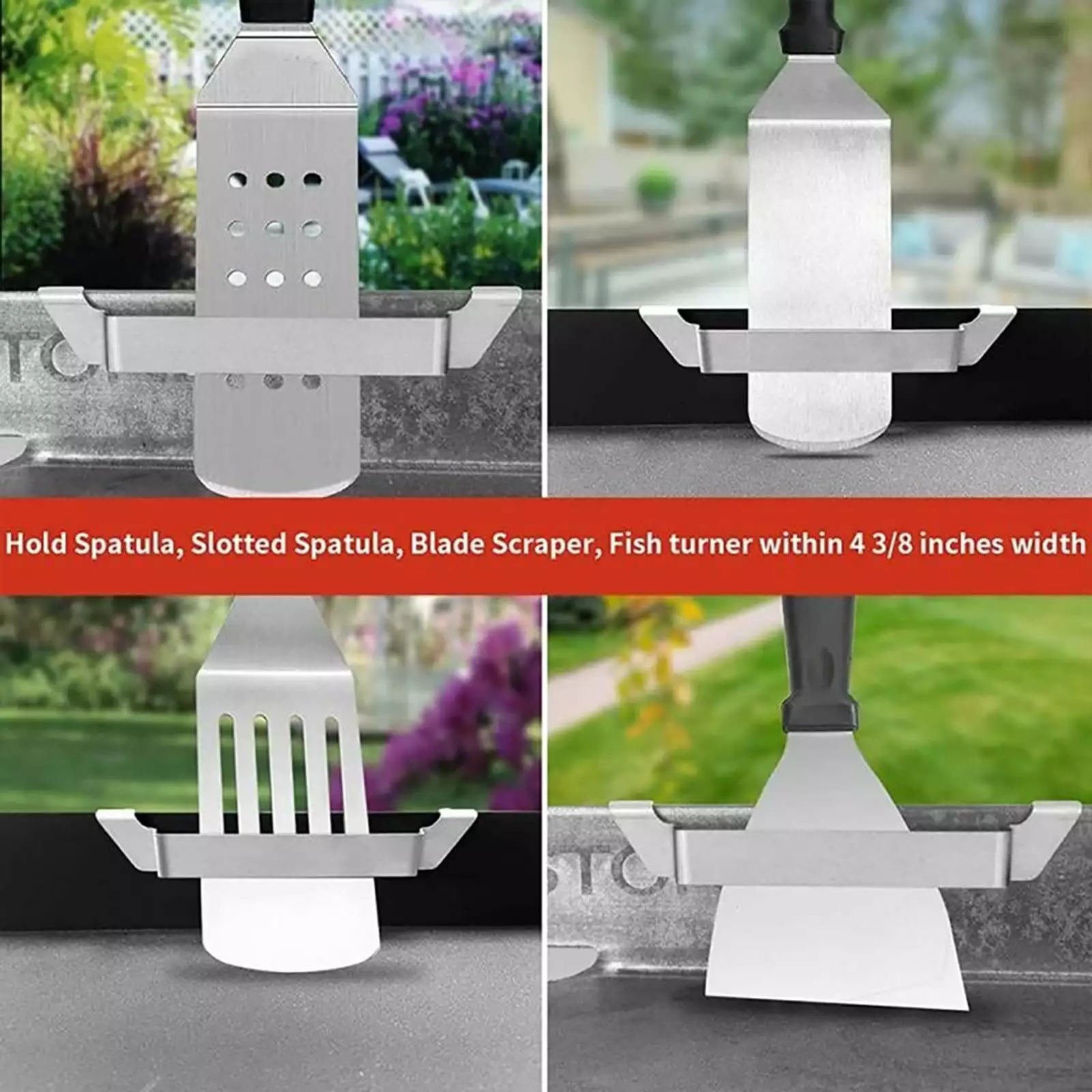 - Widely Applicable The grill spatula holder can be used most types of frying pan grills on the market to hold long spatulas. slotted spatulas. grill scrapers. fish turners. etc. Great for outdoor camping picnic grilling! Warm tip Before purchasing. please confirm whether your grill griddle is suitable for this tool.