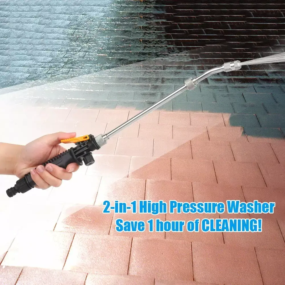- 2-in-1 high pressure washer. 2 nozzles provide jet spray and fan spray. suitable for door. window. garden. garage. etc.