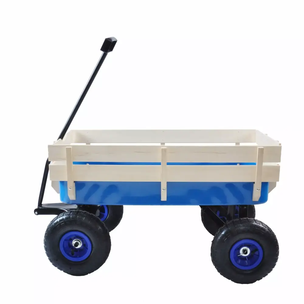 No more loading up your groceries like you’re the Hulk when you have this AK-SFW1-002 cute garden utility wagon to give you an extra hand. This big foot panel wagon has an all-steel construction. rugged air tires and wooden stake sides. which is great for your kids or grand kids to play with. The wagon can haul gardening tools or supplies in the yard! It has a large loading capacity of 176lbs. The extra-long handle is foldable under for easy storage. The wooden panels in the side are removable. Ideal for sporting events. outdoor concerts. trips to the park. gardening. and loading or unloading the car. this garden utility wagon really has an infinite amount of uses.
