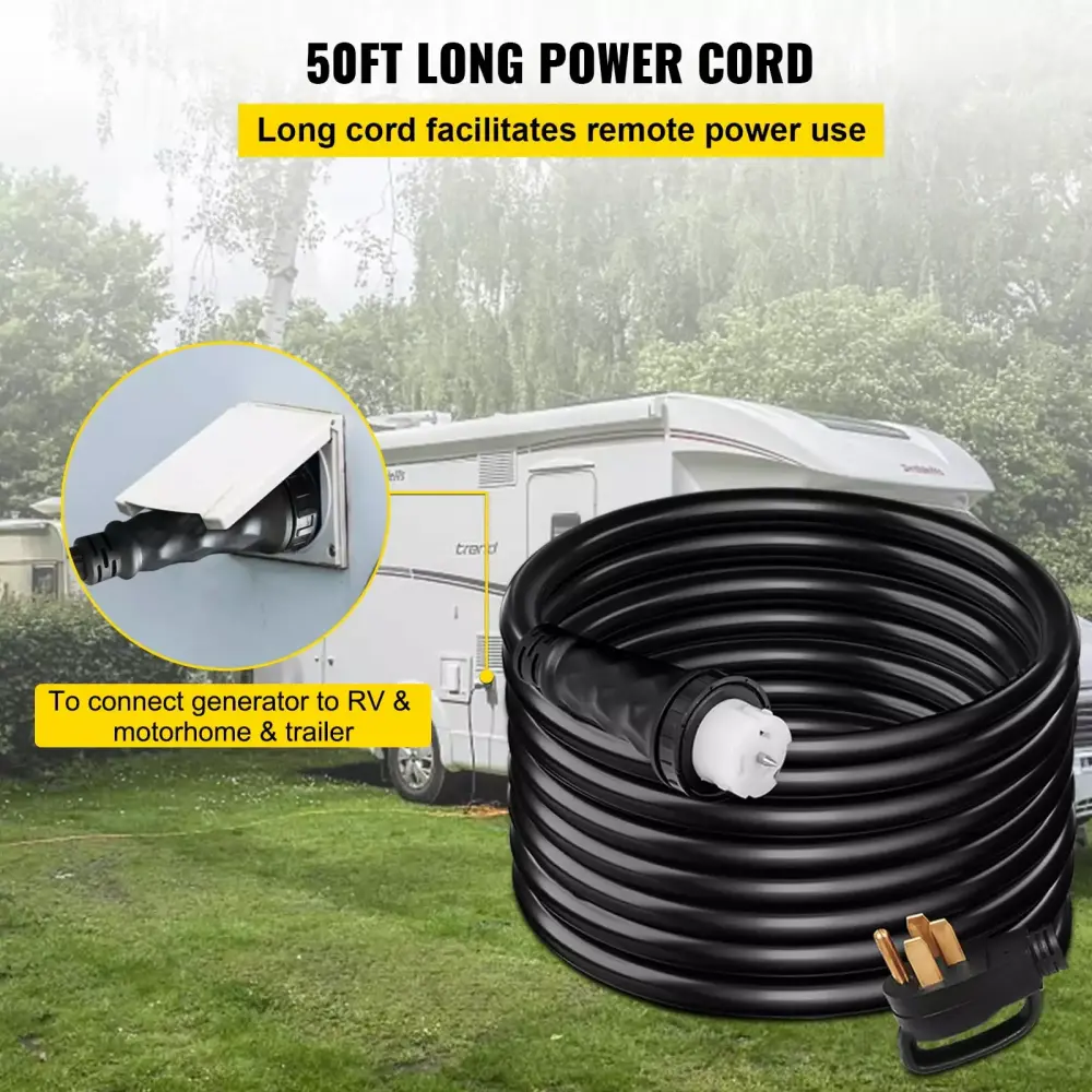 - 50FT Power Cord: The 50FT length generator cord is suitable for long-distance operation. Possessing the capacity of STW. this 50 amp generator cord can be used indoors and outdoors in all weather and seasons.