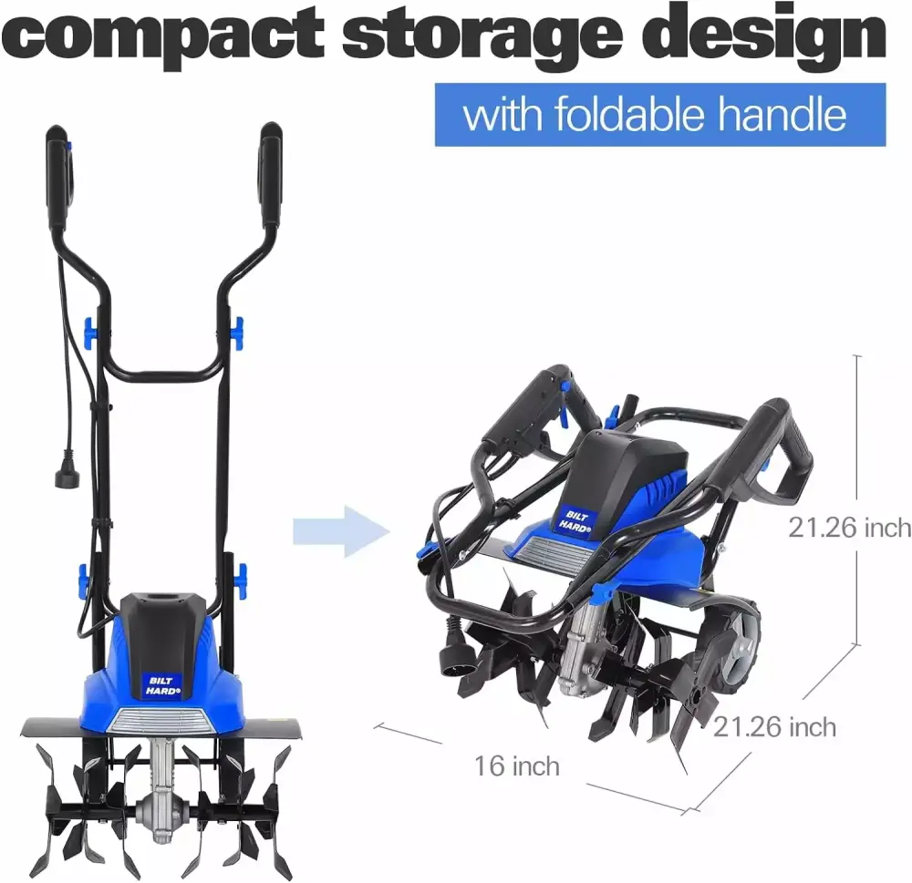 BILT HARD Tiller Cultivator 16 inch. 13.5 Amp 6 Steel Tines Electric Garden Rototiller with Adjustable Wheels