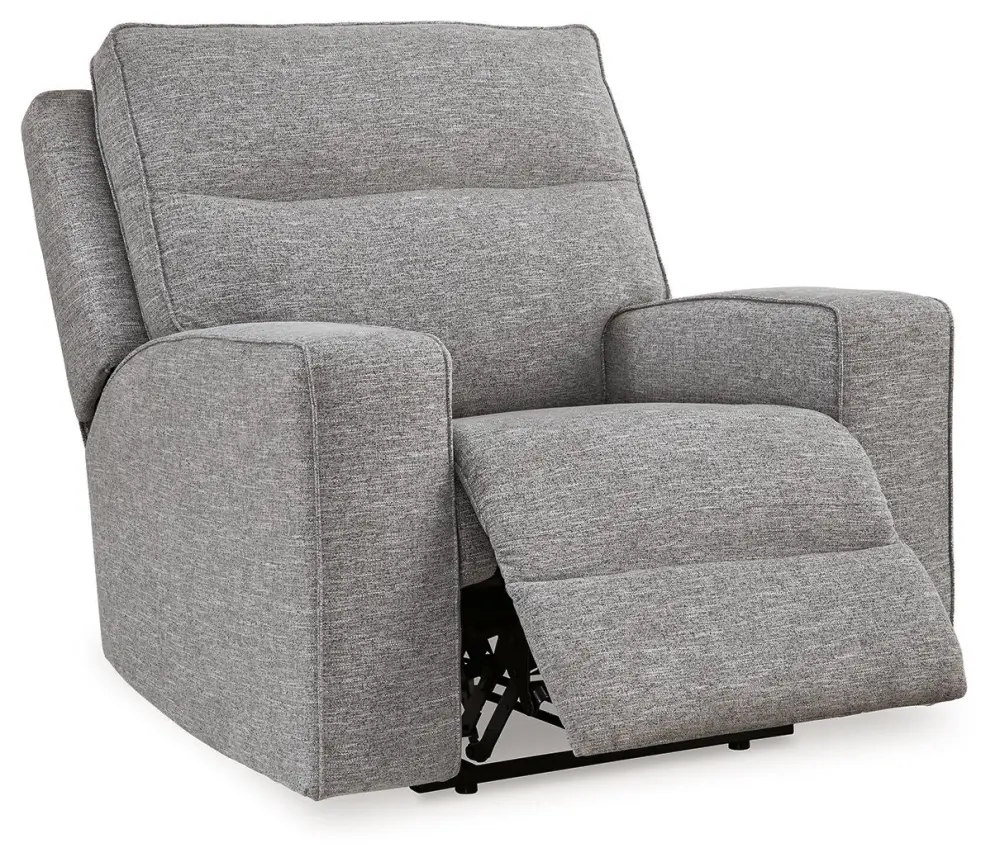 If style is the question, then this power recliner is the answer. Its clean-lined profile is beautifully contemporary. Optimized fabric, machine-washable pillows and plump cushioning make it so effortless to comfortably kick up your heels The adjustable Easy View™ headrest allows a primo view of the TV, and the extended ottoman provides bonus room to really stretch out. Simply sit back, chill out and recline away—this recliner is designed to be your favorite seat in the house.