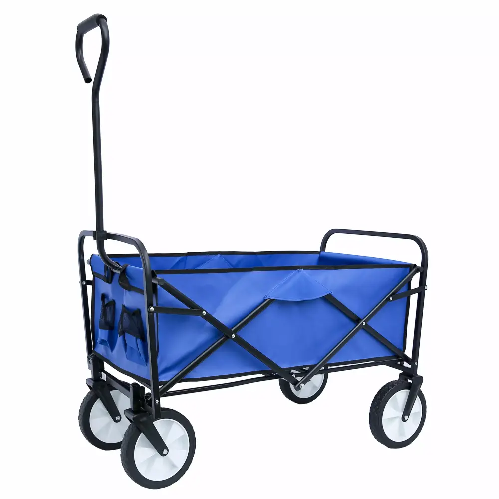 If you’re a do it all. super parent you know the struggles of trying to transport your kids’ toys and day to day necessities around at the beach or at a sporting event. For all those non-parents. you still know the difficulty of hauling groceries from the car to your home. No matter the scenario. this utility cart can handle it. From toys and groceries to everything in between. go with the Folding Outdoor Cart and lighten your load.Constructed with a heavy-duty steel frame and durable 600D polyester fabric. this cart will hold up no matter what job you throw at it. Unlike other copycat carts. this one folds compactly and stores easily in your trunk. garage. or closet. ensuring easy transport. Plus. the best part is it takes only seconds to set up and use.Lighten up your load and utilize this versatile cart for your everyday needs. Lots of Room The outdoor utility wagon features the biggest bang for your buck. This large interior measures out to a capacity of 31.5" x 18.11" x 11". The utility wagon also folds out to its full size in a matter of seconds with no assembly required. Heavy Duty The wagon was built to last. The wagon is built using durable 600 Denier fabric. The heavy duty frame allows you to carry up to 150 pounds of gear with ease. Think of all the trips to and from the car you will save. Functional Features All utility wagons come with an adjustable handle for effortless transport across multiple surfaces (pavement. grass. etc.) It also comes with 2 mesh cup holders to keep your beverages safe and sound. HIGH QUALITY The utility wagon cart is made of strong steel and iron frame. fixed handle is firm and practical. rubber wheel is suitable for hard road and beach. Durable and waterproof 600D Oxford cloth is easy to clean and has a long service life. WIDE RANGE APPLICATIONS Folding utility wagons are used in a wide range of applications. such as outdoor activities. beaches. gardens. parks. camping or shopping to make your life more convenient. EASY FOLDING & STORAGE Outdoor wagon has internal pull rope design. a few seconds can easily fold and expand. without installation .simple operation. The wagon can be folded up to just 8 thick. about 30 "x21.2" x 9 " in folded size. and can be folded into a portable bag and space saving. or easily stored in a closet. garage or car trunk. Product Dimensions: 40.5"L X 21.26"D X 46.46"H Folded size:30 "Lx21.2"D x 9 "H Pulling handle size:24.8"Max weight capacity:150lbsWeight 19.85lbsFrame:durable steel .Folds Conveniently .Powder-coated blackClearance! Folding Wagon Garden Cart Beach Wagon Grocery Wagon All-Terrain Wheels Garden Grocery Wagon for Shopping Park Picnic. Beach Trip. Outdoor Activities. Camping (Blue)