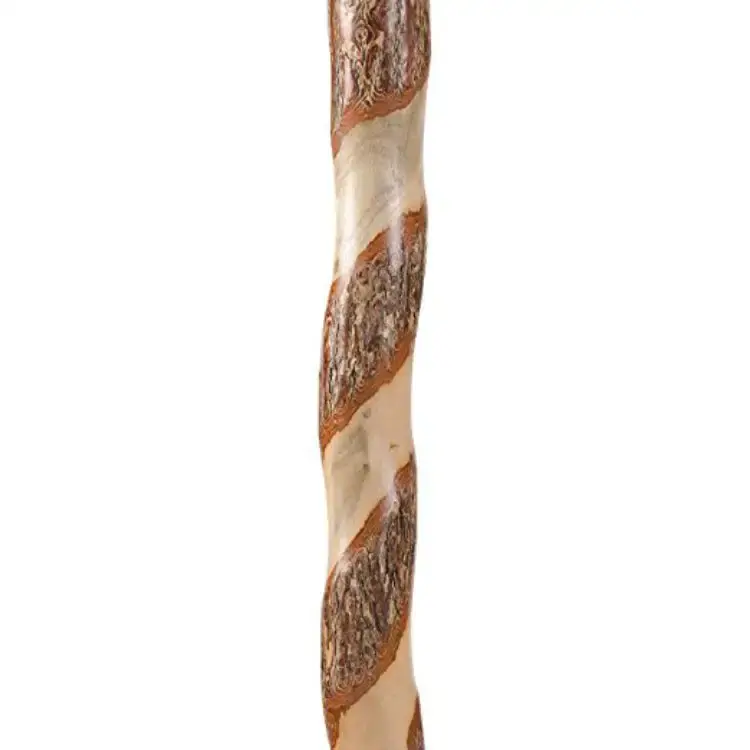 The Twisted Sassafras Walking Cane blends rustic beauty and timeless elegance. making it the perfect cane for collectors. enthusiasts. and those needing a sturdy walking aid. With its distinct. reddish bark. and its stunning. majestic twist. the Twisted Sassafras Walking Cane is easily one of more sought-after walking canes. Each piece of sassafras is meticulously chosen. prepared. cut. and sanded. giving it our distinctive twist. Finally. each cane is sprayed with a protective clear coat lacquer – the result is a smooth finish that magnifies the wood’s innate beauty. The finished stick is a one-of-a-kind. handcrafted walking cane that is both sturdy and attractive. The handle in a lighter tone complements the colors in the shaft.