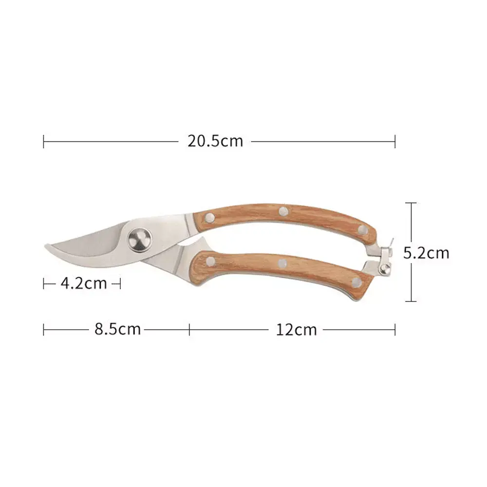 2.Easy to operate: The beautiful and sturdy wooden handle is suitable for left or right hand use. A locking mechanism keeps the garden clippers closed when not in use.