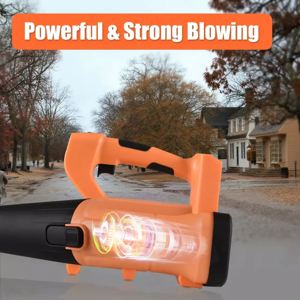 Cordless Leaf Blower 3000W Electric Leaf Blower 6 Adjustable Speeds 4000mAh Battery Powered Leaf Blower for Lawn Care Snow Blowing Yard Cleaning: Powerful Leaf Blowerequipped with powerful copper motor. the electric leaf blower features longer life span. lower energy consumption and stronger wind power; built-in turbo fans. the handheld leaf blower delivers a maximum wind speed to 168m/s. ensuring a better user experienceBattery OperatedThe handheld leaf blower is powered by large capacity lithium battery and can be recharged by the included power cable. Quick charge and long working time. enough to clean your courtyard. house. car. etc.6 Adjustable Speeds & 2 Types Tube HeadThe cordless leaf blower supports 6 levels of adjustable speed. which can help you easily convert from indoor work to work; and comes with 2 types of tubes to meet your different cleaning requirements.Lightweight & Ergonomic DesignThe leaf blower has a super light body. you can easily operate the leaf blower with one hand and take it to multiple places to do cleaning tasks. With a comfortable handgrip for more convenient usage.Wide ApplicationsCordless leaf blower works perfectly for sweeping debris from lawns. yards. garages. driveways. garden. etc. Whether dust-blowing. leaves-blowing. or snow-blowing. our leaf blower can meet your multiple daily cleaning needs. Make cleaning much easier and effective.