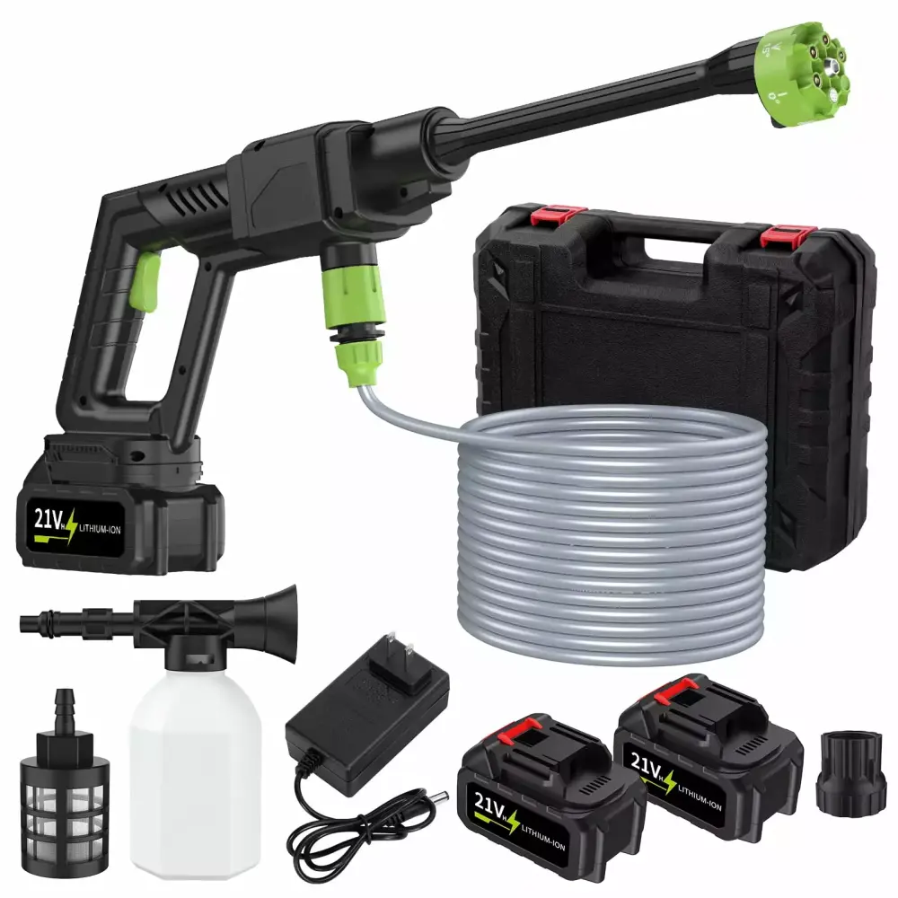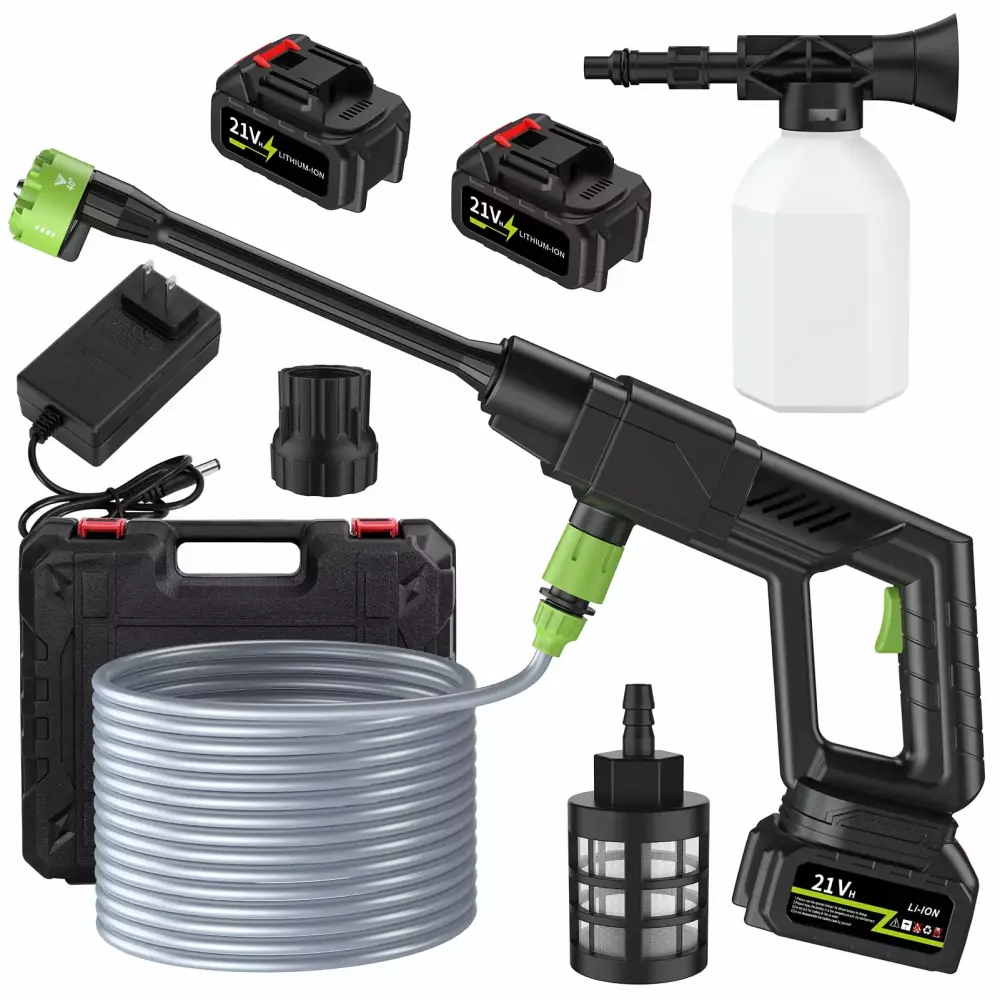 - Premium Material & Easy to Use: Using professional knowledge and high quality ABS materials. the cordless car washer always performs as required. Make those tricky cleaning jobs a breeze. The premium filter efficiently removes impurities and deeply filters impurities in water. protecting the lifespan of the water pump. Lightweight and more compact than a pressure washer. Just pressing the switch. the sensitive portable pressure washer jets water in three seconds.