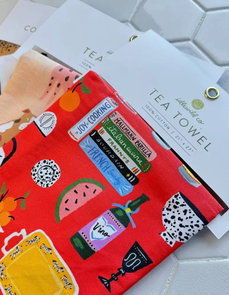 Our vibrant tea towels are just the thing to add a touch of colorful flair to your kitchen, or a thoughtful hostess/housewarming gift!