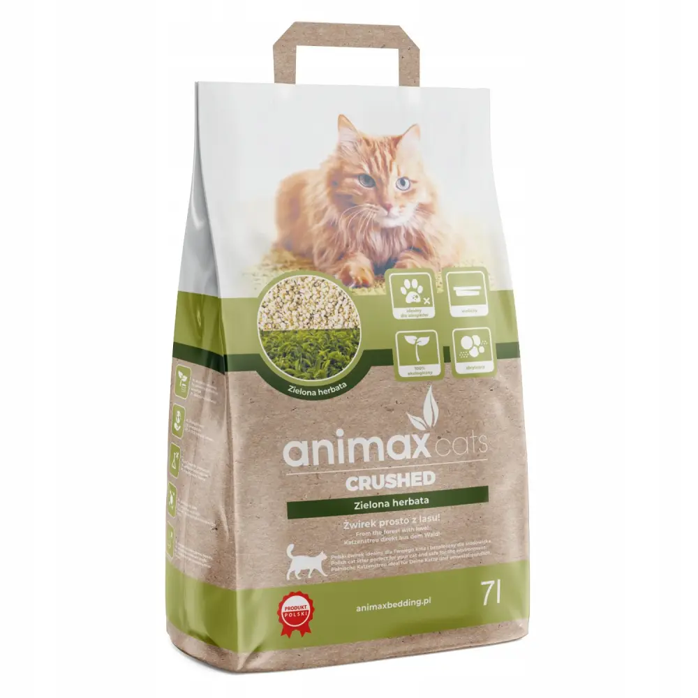 Meet your kitty’s new favorite clumping litter! 100% natural, assembled of conifer sawdust, this litter is optimal for both feline explorers and the environment. Thanks to the specially selected fraction, it does not adhere to paws or fluffy fur. Litter does not dust, so it will be accepted even by the most sensitive cat noses. What’s more, the litter has the unique ability to form hard, slick lumps after contact with moisture. This means that removing dirt from the litter box becomes easy and pleasant. All you have to do is gently lift the clumped part with a special shovel, shake off the excess litter, and you’re done! Animax Cats Crushed is also particularly absorbent (it absorbs up to 4 times its own weight), completely biodegradable and will bring the delicate scent of a forest walk on a sunny day into your home.