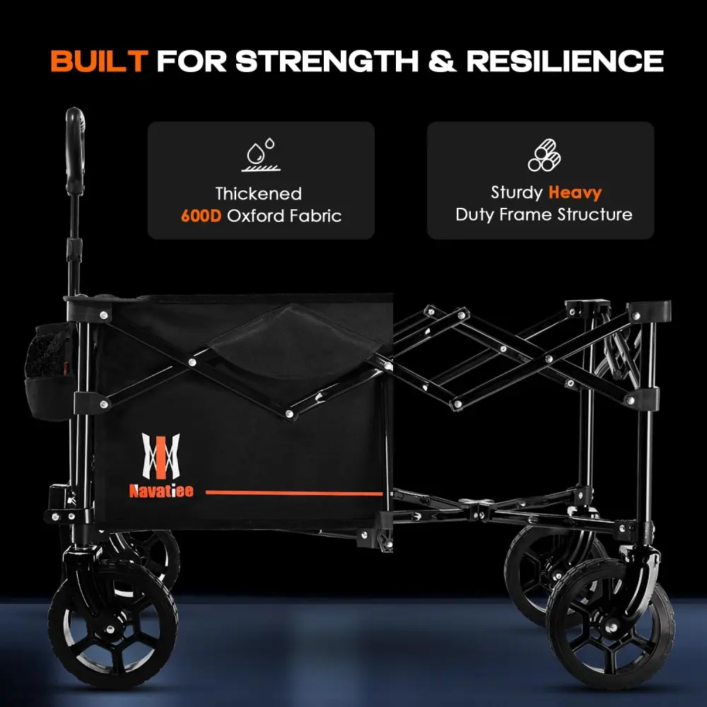 - LONG-LASTING SUPERIOR PERFORMANCE : Made of iron frame. the structure welded is absolutely solid and durable. which can maximum load up to 220lbs to efficiently carry high loads. With our proprietary heavy duty durable frame technology and combined with thickened 600D Oxford fabric to make the wagon maximize its functionality.
