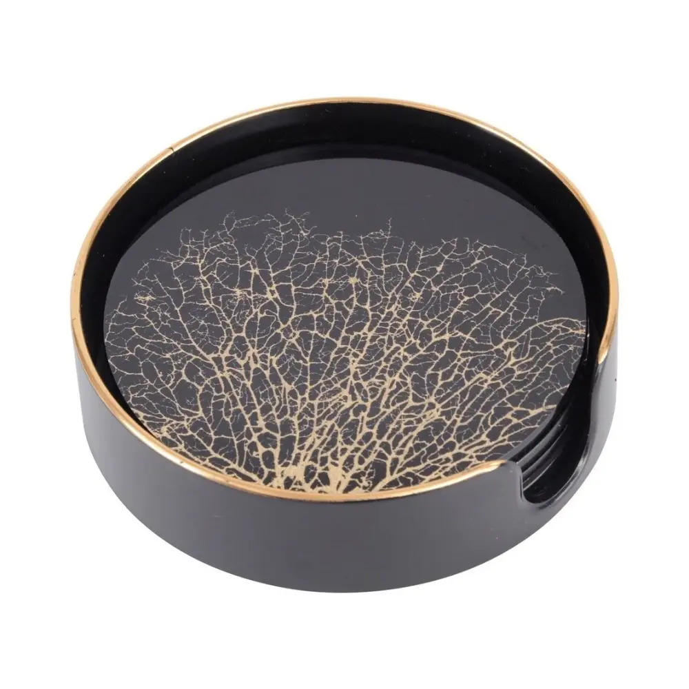 Coral Design Coasters Set 4 - Black & GoldCoral Design Coasters Set of 4 – Black & Gold