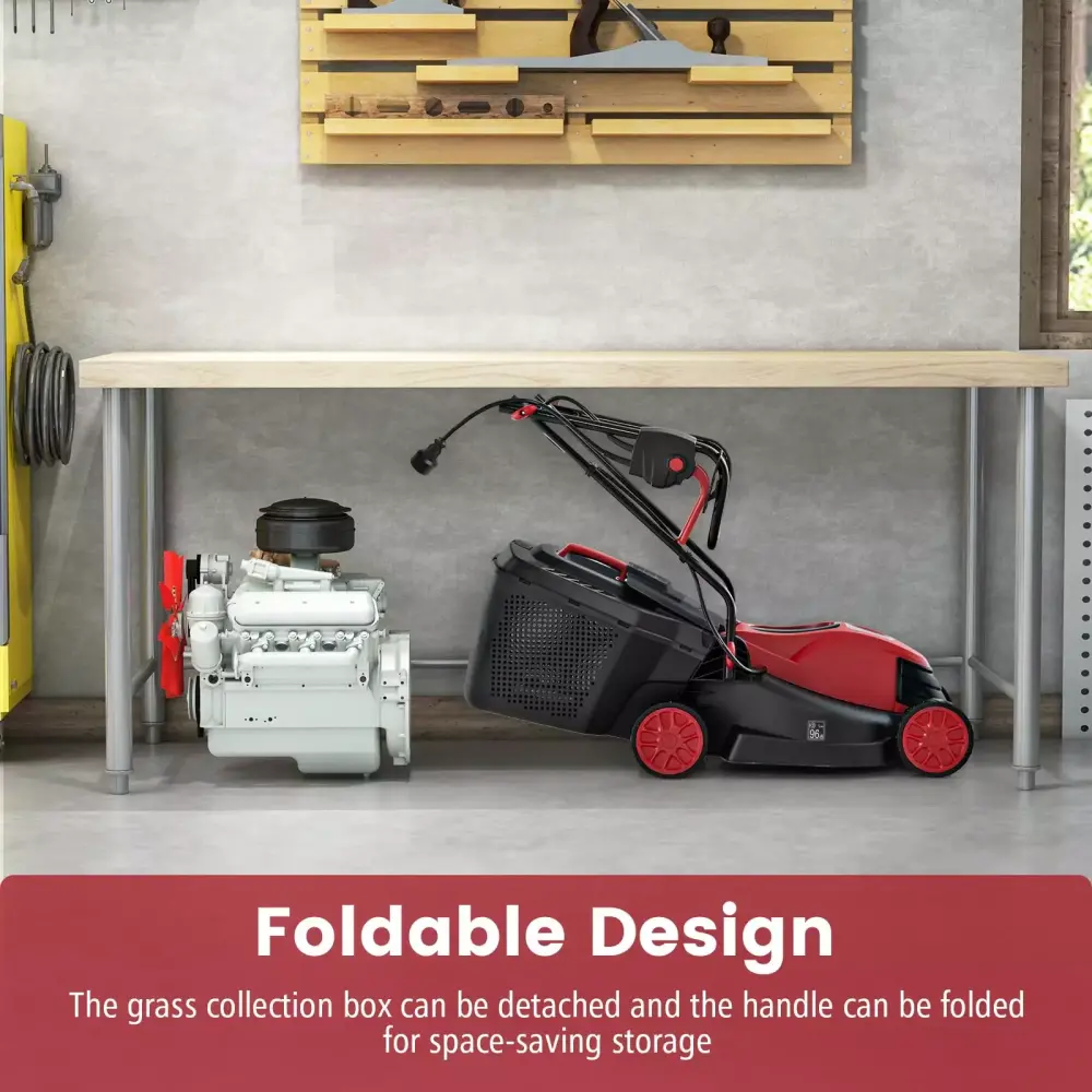 Tired of the weeds in your front yard but don’t know what to do Try our powerful weed mower now! Equipped with wide 13 inch cutting blade and 3450 rpm powerful motor. you can clean your yard with high efficiency. Not to mention the 3 position free adjustment system. allows you to cut the glass of 1. 1.8 and 2.5 height. Meanwhile. the light weight body part and 5 inch wheels offer smooth movement through the grass. Apart from that. this grass cutting machine provide both safe electronic start and self locking function for your safety. This space saving folding mower will be a great assistant to your life!