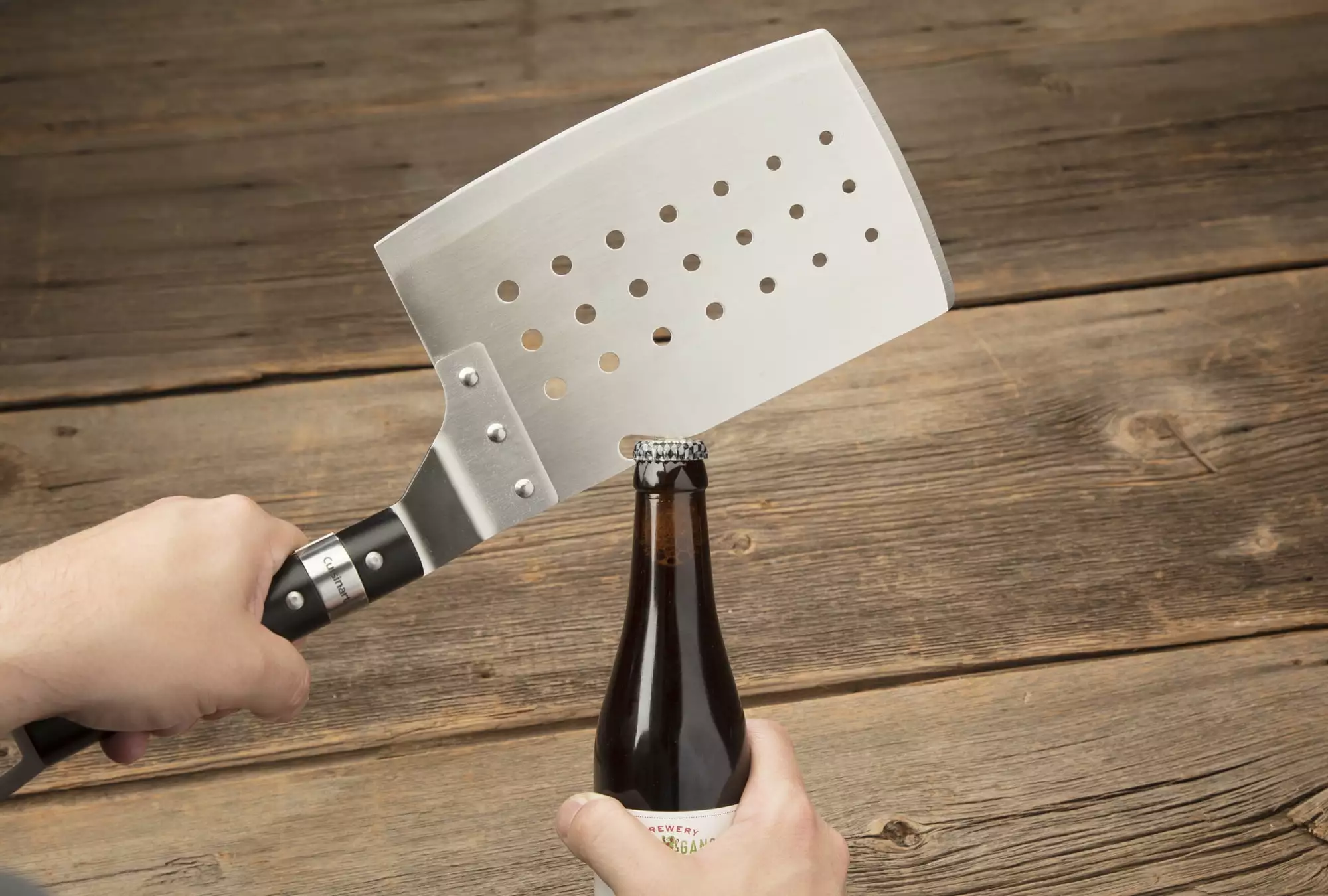 - SPATULA: The TriTip Spatula has an over-sized surface for handling larger meats. a bottle opener. and a sharp cleaver cutting edge