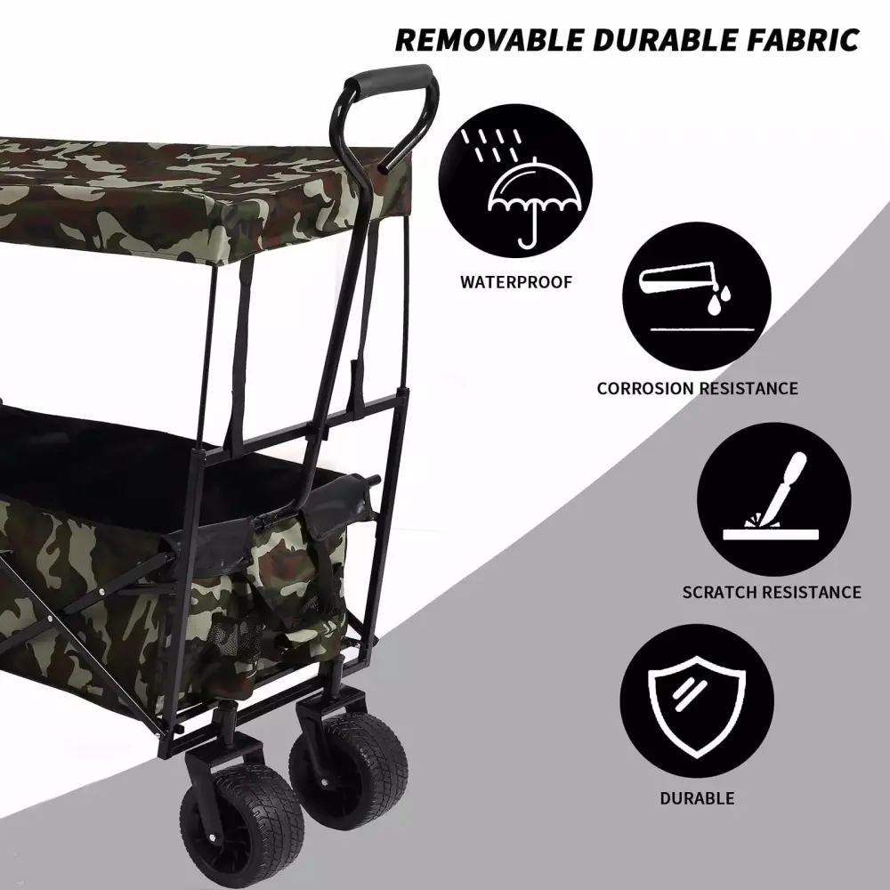 - Extra Canopy and Pockets: The updated all-terrain folding car features an Oxford cloth canopy for easy assembly and disassembly. Simply remove the canopy and retract all four canopy poles. fold the canopy and put it in the extra pockets we provide.