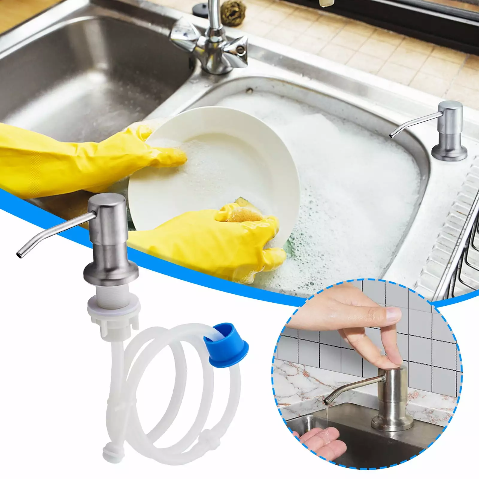 - Stainless Steel Sink Soap Dispenser Detergent Pump Head And Extension Tube Set silver