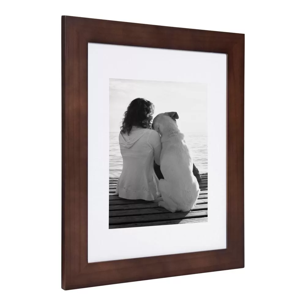 - Capture your favorite moments and tell a story with DesignOvation Museum Frames. A gorgeous collection of quality wooden frames in a modern walnut brown finish will create a stylish statement that allows you to commemorate and customize your special occasions. The opening is 11×14 matted down to 8×10. The outside frame dimensions are 13.5×16.5-inches. Comes in a pack of four.