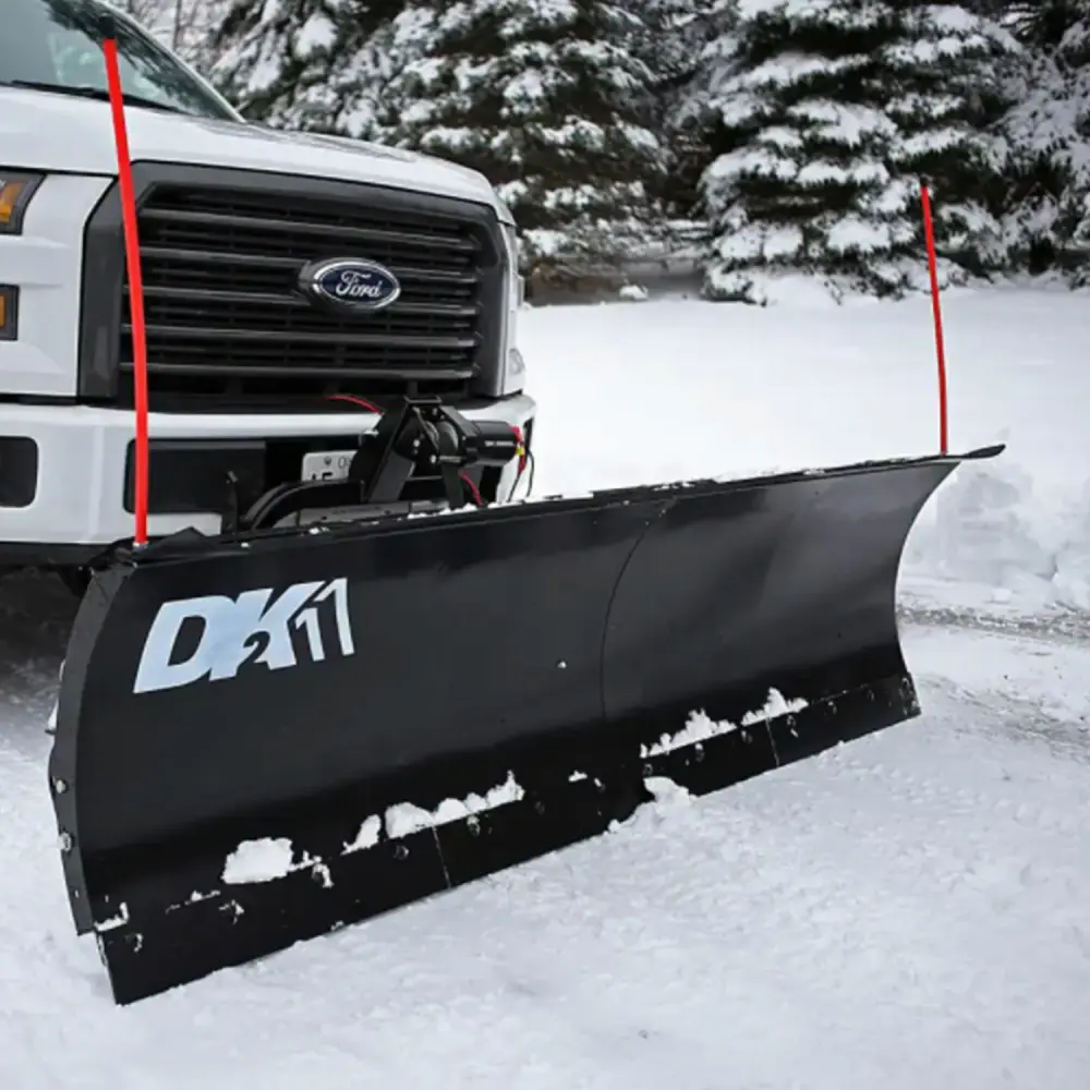 The Detail K2 snowplows are manufactured using high-quality steel. You will be able to clear your driveway in a fraction of the time it would take with a shovel or snow blower. K2 also gives you the option of choosing from either an 82 or 84-inch wide model plow. These plows are capable of pushing large amounts of snow easily and efficiently without rusting or corroding and are more than tough enough to take abuse without easily denting or dinging as well. The K2 snow plow slips into any standard 2-inch front receiver hitch for easy connection and disconnection. The plow comes complete with a snow deflector. skid shoes. and caster wheels. no need for any extra accessories. A wireless controller allows you to raise or lower the blade without leaving the comfort of your cab.