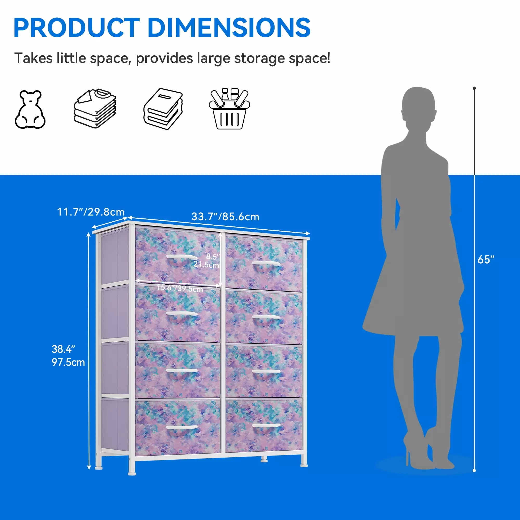 Dextrus Fabric Dresser for Bedroom. Tall Storage Dresser with 8 Drawers. Black Dresser & Chest of Drawers. Storage Drawer Organizer for Closet. Bedroom. Living Room. Tie-dye Purple