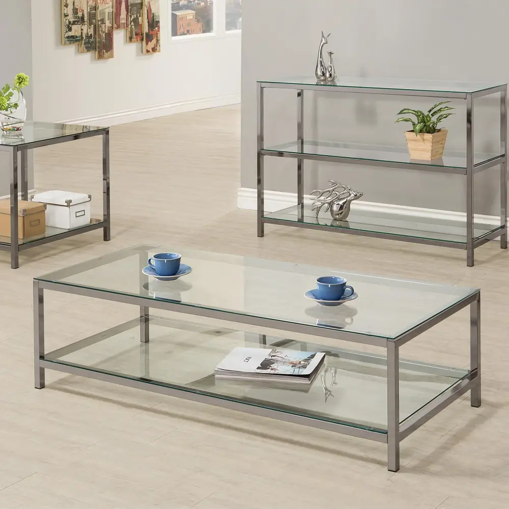 Sleek and contemporary, this coffee table pairs a black nickel electroplated frame with clear tempered glass surfaces. Its spacious tabletop and matching lower shelf provide ample room for storage or display, ideal for up-to-date living spaces. The minimalist open-frame design adds a light, airy feel, while the durable tempered glass ensures long-lasting operate. Perfect for complementing various interior styles, this table supplies functionality and elegance in equal measure.