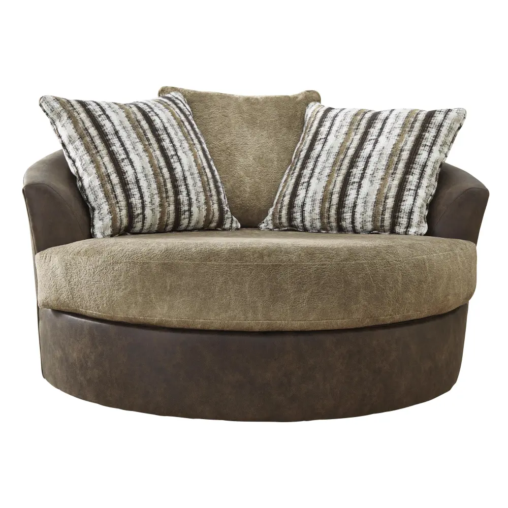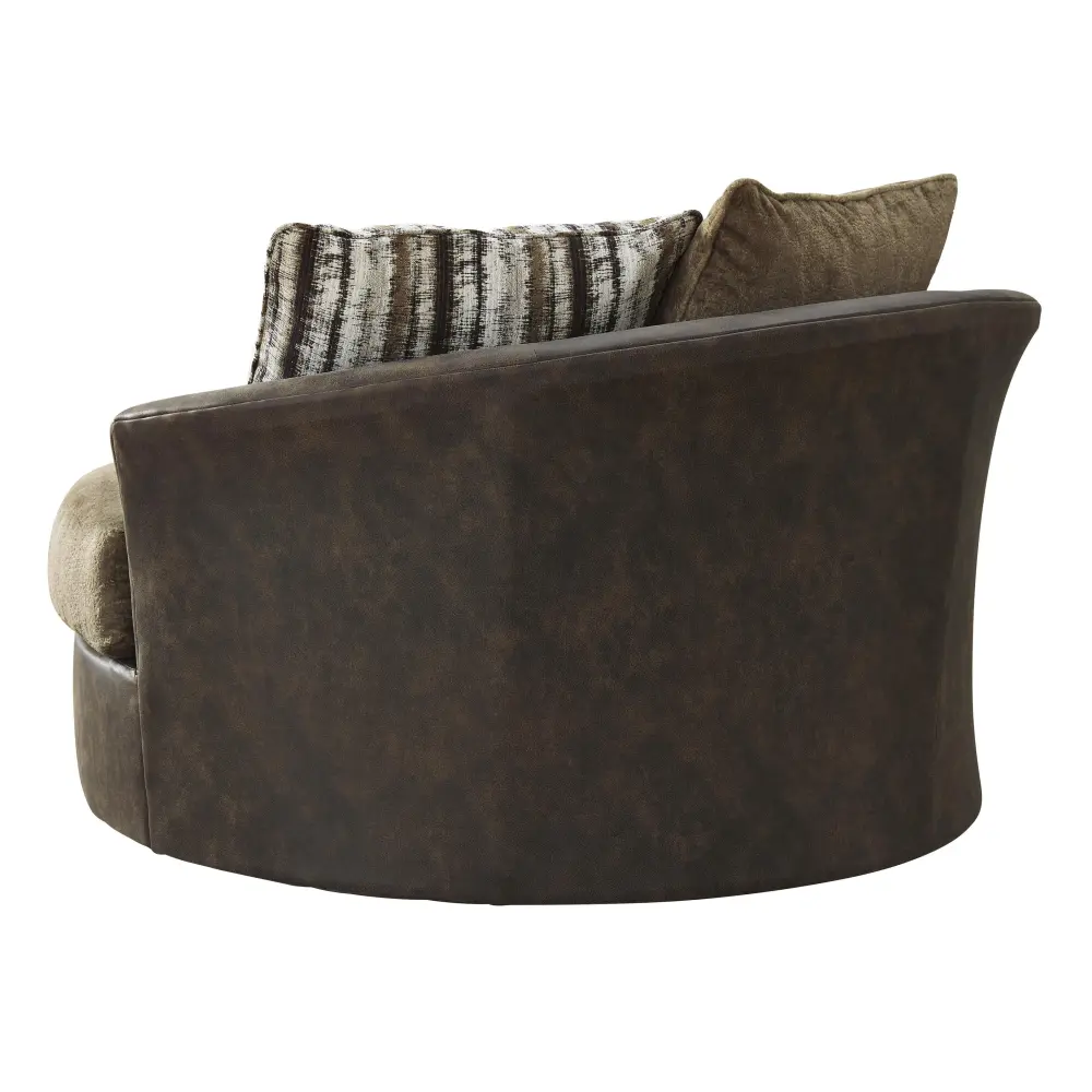 This roomy swivel accent chair is perfect for those who love the look of leather. Two textural tones provide twice the style and comfort—and incorporate an added layer of visual interest. By allowing you to swivel, this chair marries the best of form and function.