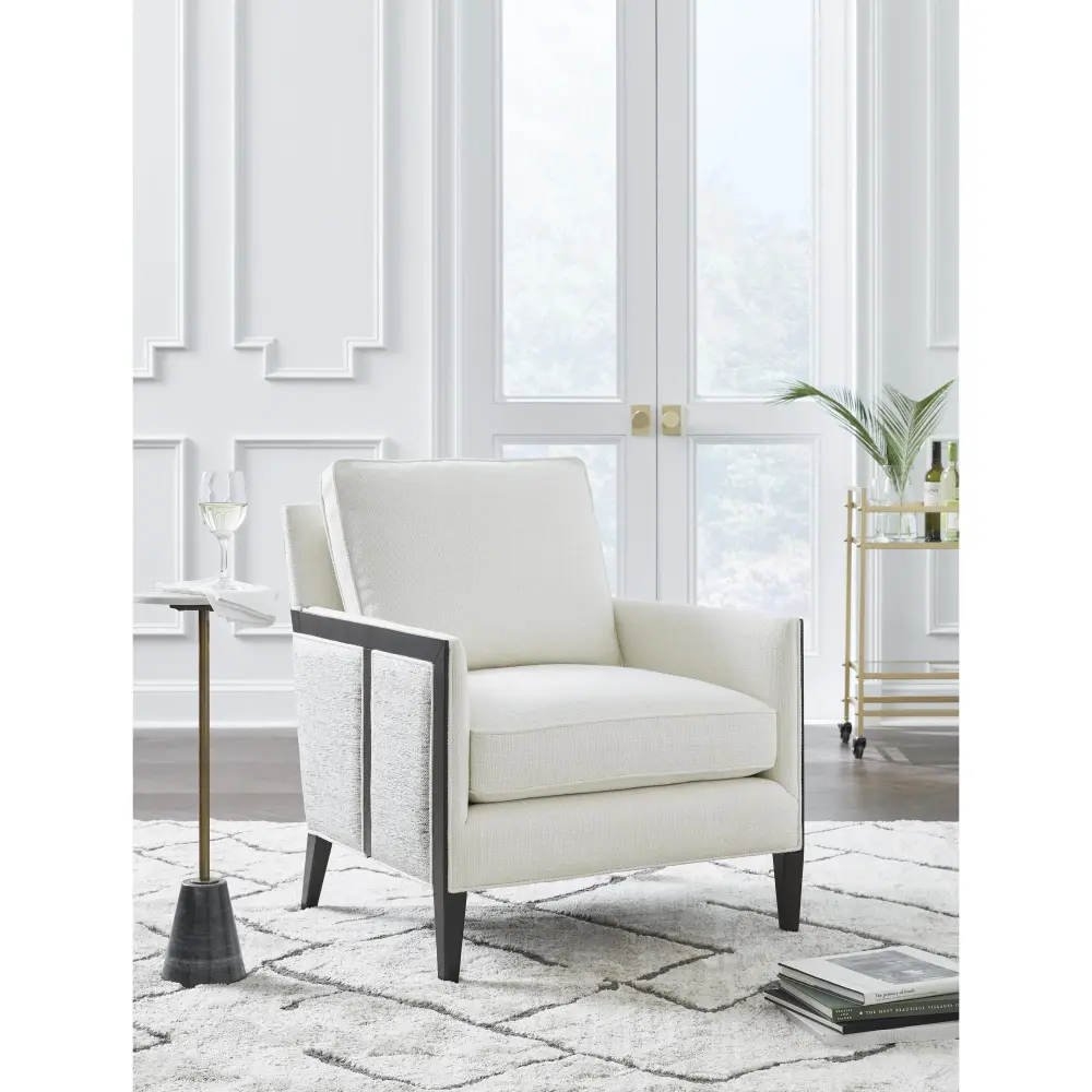 This accent chair completes your lounge area in chic, contemporary style. Itβs a fashion-forward take on geometric patterns, with the exterior fabric in varying neutral hues contrasting the ivory seat. With this chair, your trendy interior is premium with both eye-catching appeal and everyday comfort.