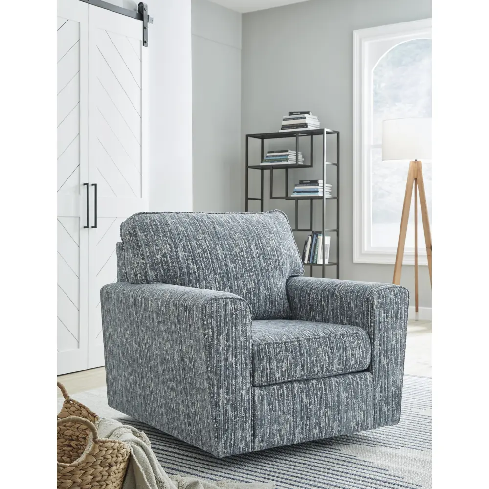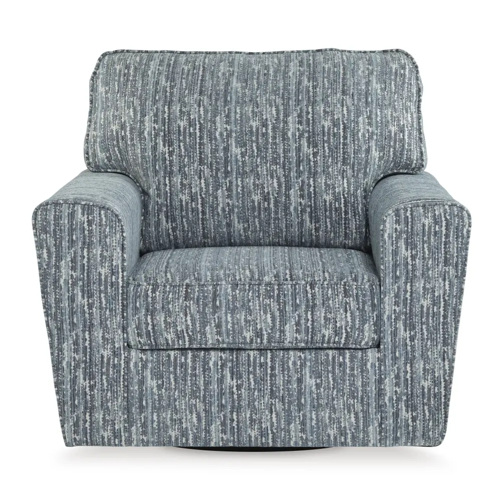 Strike the perfect balance between chic and cozy. This swivel accent chair appeals to your mod sensibilities with its abstract stripe design. When you’re ready to relax, wide track arms welcome you to sink in. And a pivot base doubles down on function, allowing you to easily reach a chairside table or keep up with the flow of conversations.