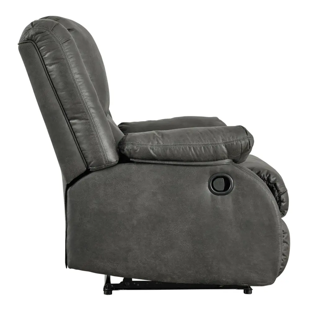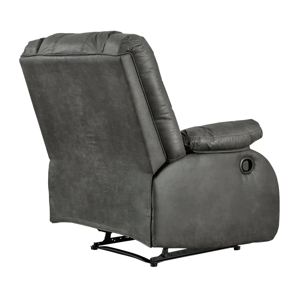 Make a big impression in a smaller footprint with this chicly styled zero wall recliner. Thanks to its space-conscious design that requires a mere three inches between the wall and chair back, you can stretch out more smoothly. Wrapped in a fabulous faux leather loaded with pebbly texture and tonal variation that looks so natural, this designer recliner sports contoured tufting and contrasting baseball stitching for a style home run.