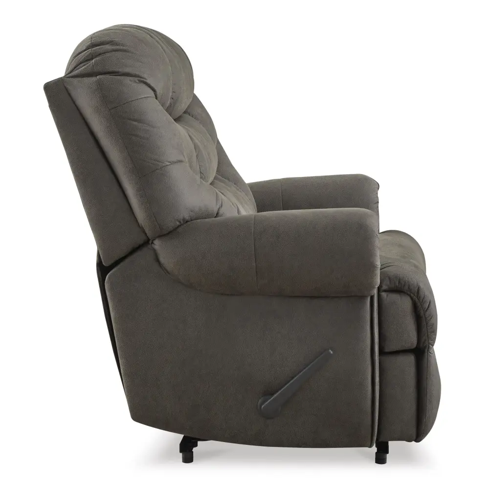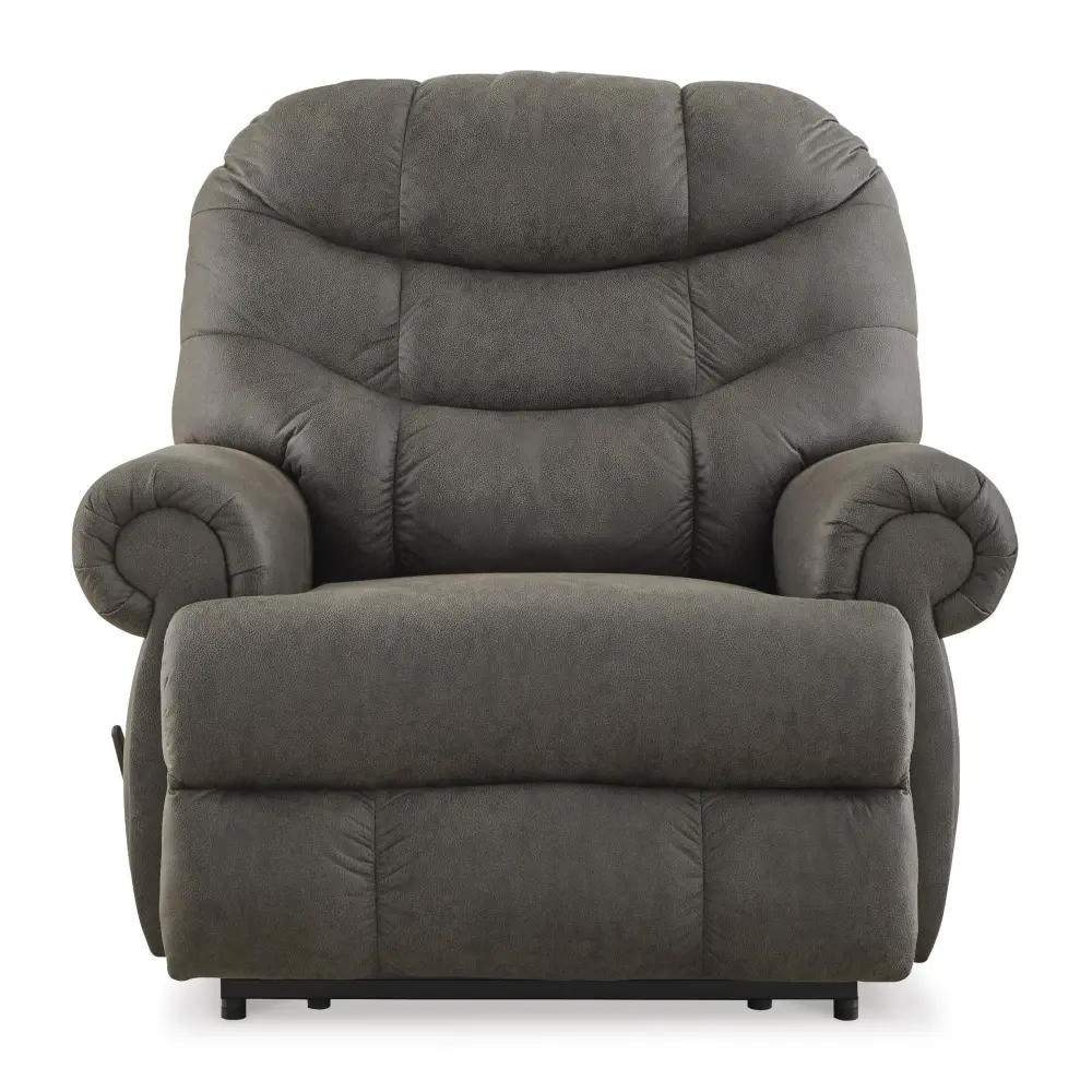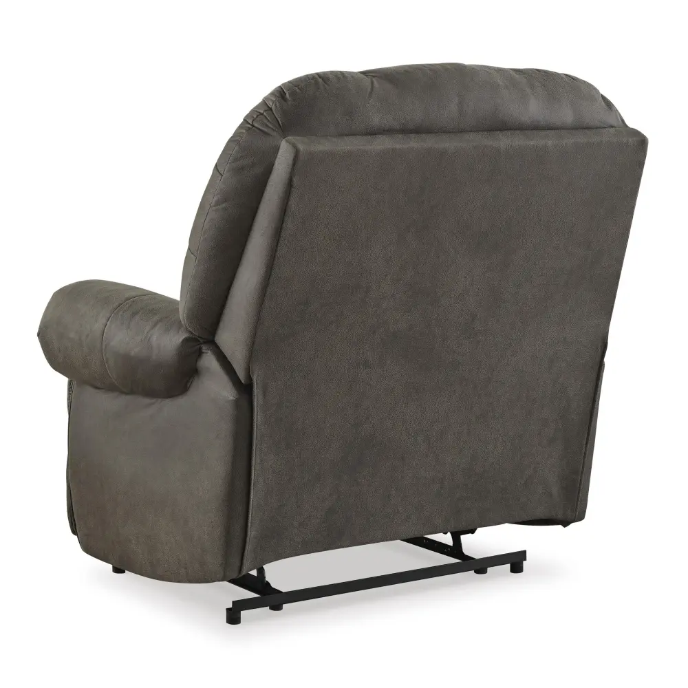 Spacious for comfort and traditional for style, this large-scale recliner is the perfect picture of reclined relaxation. The generous seat and high back are specially crafted to provide extra support and comfort for broader and taller individuals. Pillowy yielding cushions upholstered in rich faux leather treat your body to luxury, while one smooth pull eases you back in the recliner you’ve been looking for.