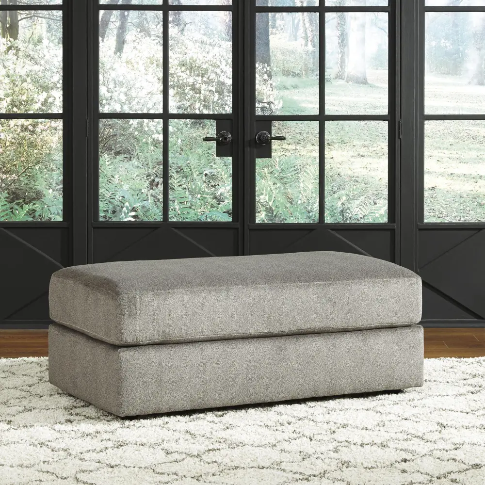 Flaunting a trendsetting silhouette, this oversized accent ottoman puts the contemporary in your contemporary home. Its ample surface space gives you elongated plushness for foot relaxation. And the velvety material fabric satisfies your need for a piece that feels as good as it looks.