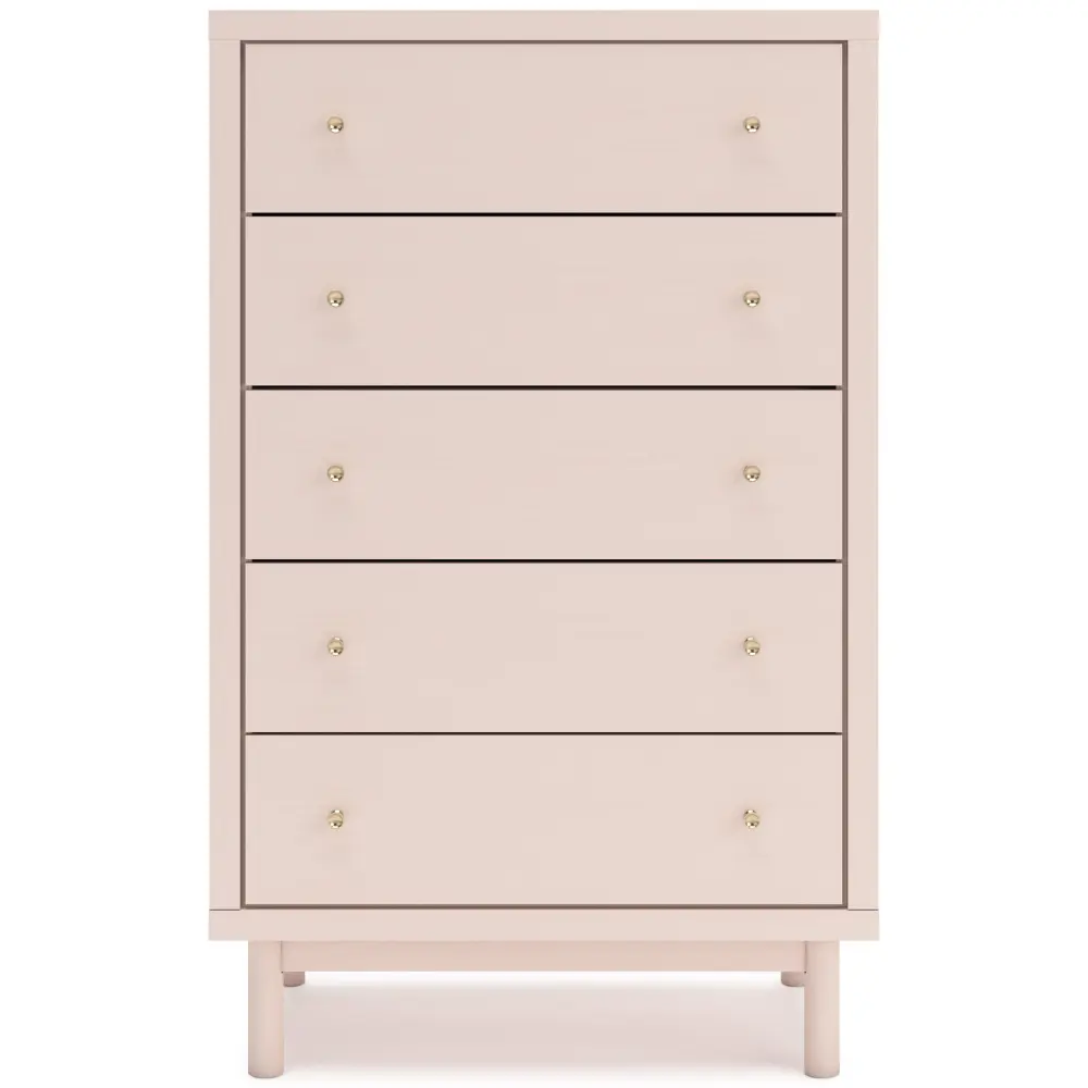 Pretty in pink. This chest of drawers keeps the spirit of your homeβs modern aesthetic while suiting all your young oneβs needs. Its subtle blush finish brings a playful, charming vibe to organizing clothes and other essentials. Assembled for her and styled for you, itβs a lovely addition to a beautifully chic childβs bedroom.