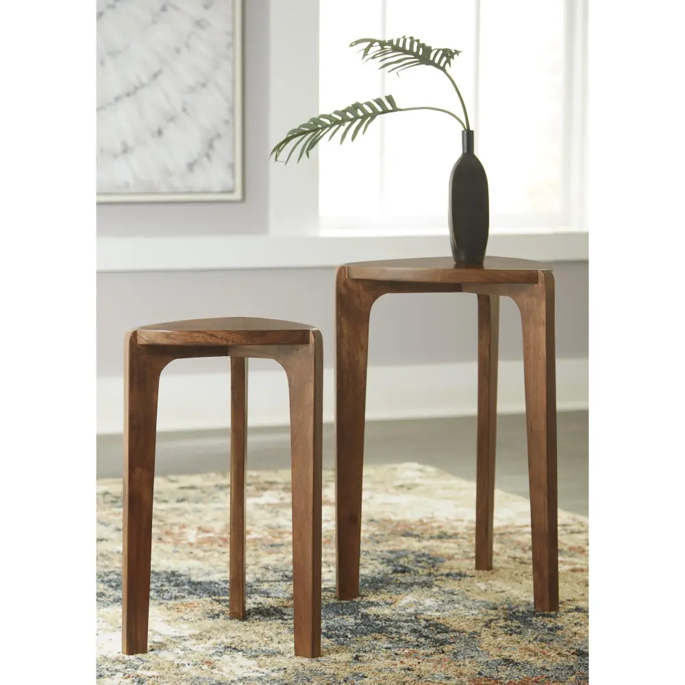 This accent table set brings beautiful versatility to your contemporary living room. Stage the tables as a nesting pair to create the look of a dynamically layered coffee table. Place next to your favorite sofa or chair to keep sofa-side essentials within reach. With a simple design that highlights the beauty of their hardwood construction, this set provides you with elevated style and everyday function.
