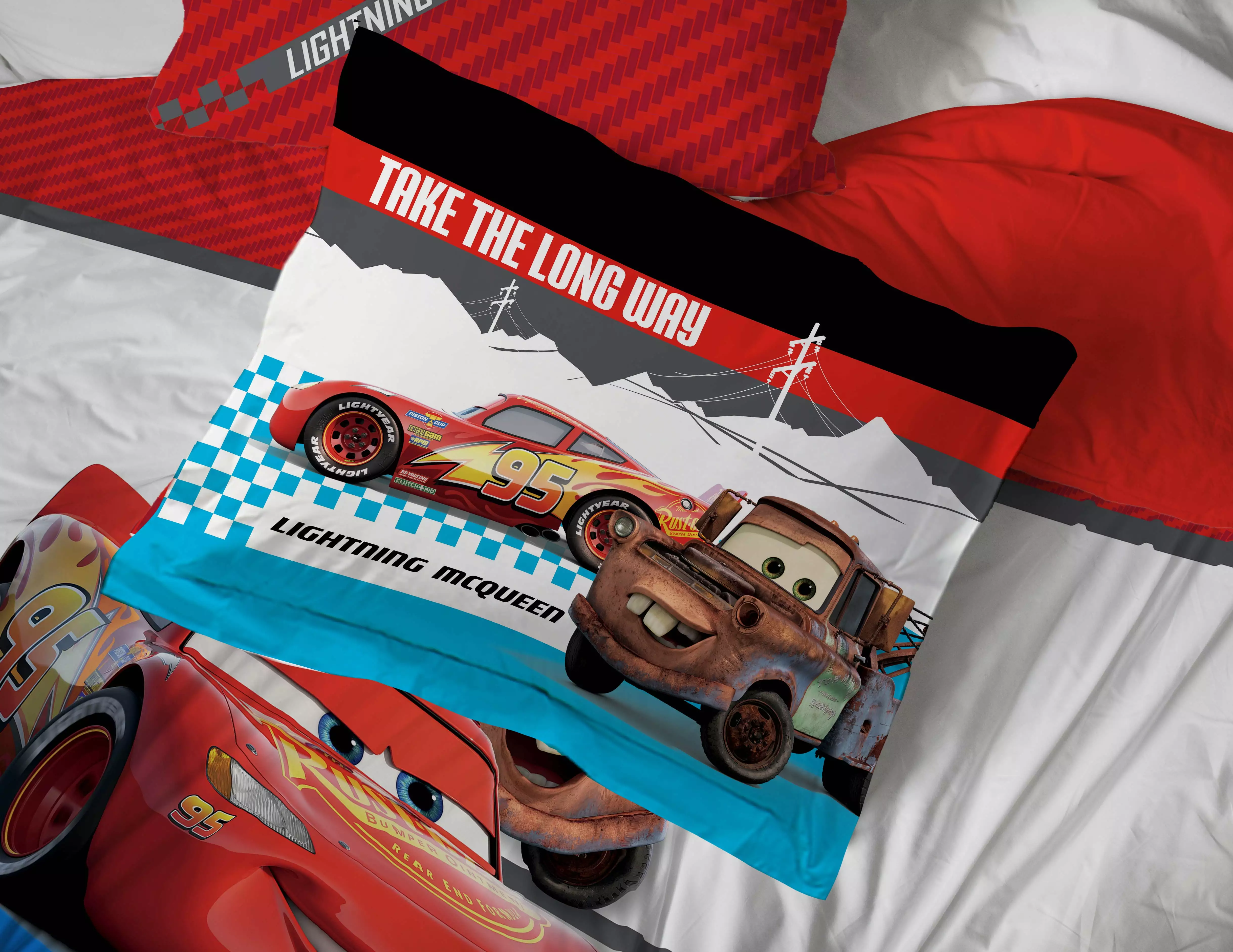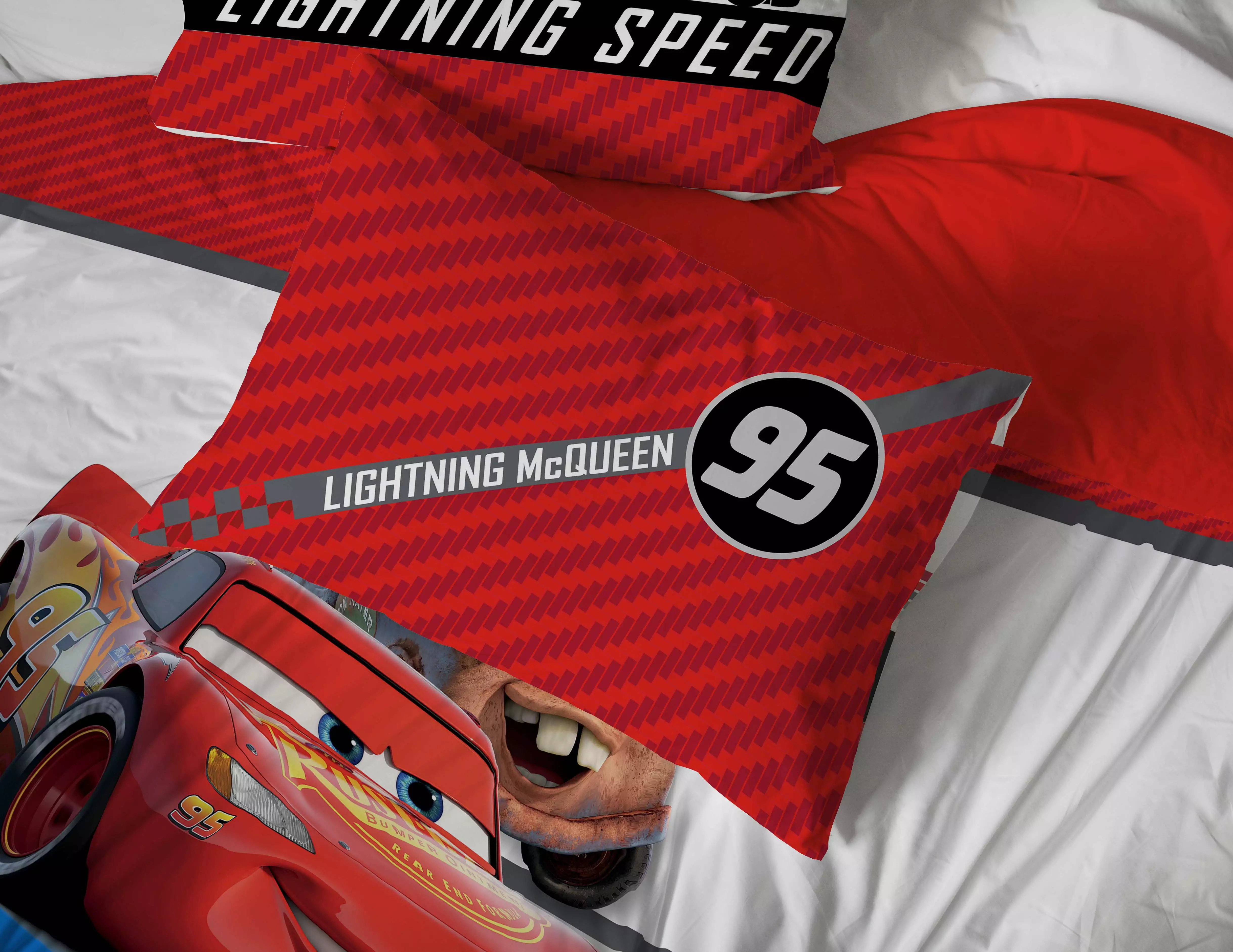 Take a ride on your favorite car with this Disney Pixar Cars Racing Machine full bed set. This colorful 7 piece bed set will dress up any bedroom décor. Kids will be excited to jump into bed with this super soft bed set featuring their favorite cars Lightning McQueen. Jackson Storm. Cruz Ramirez. Lewis Hamilton. Sure to keep you warm. this comforter is stuffed with polyester fill for loft and cozy comfort. Quilt stitching holds fill in place and adds decorative flair. Durable polyester fill is soft. comfy. and warm and holds its shape after multiple washings. Design allows you to instantly change the look by simply flipping the comforter over. Complete bedding ensemble includes full comforter. fitted sheet. flat sheet. two 20 x 30 inch standard pillowcases. and two 20 x 26 inch shams. Easy care. machine wash cold. tumble dry low.