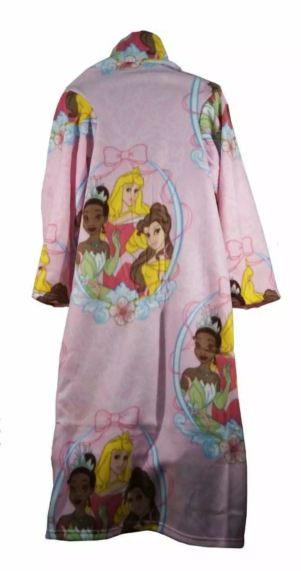 Have your child snuggle up with Disney Princess Royalty. Cinderella. Jasmine & Belle in this one of a kind blanket with sleeves. Enjoy the comfy warm feeling of being completely surrounded in a throw with having the freedom to still use your hands