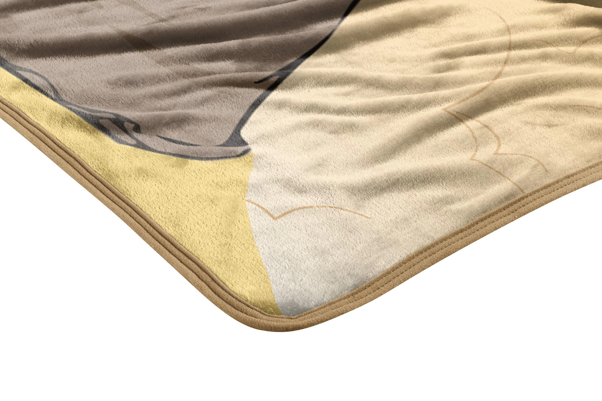 Keep cozy in this Disney: The Mandalorian "Sun Child" silk touch throw blanket by The Northwest Group. LLC. The adorable Grogu is features against a neutral desert background on this 40 inch x 50 inch silky-soft and warm throw with decorative binding around all edges. Use it in the bedroom.on the go. or cuddle under it in the den while watching TV! This throw is made of 100% polyester. Machine wash and dry for easy care.